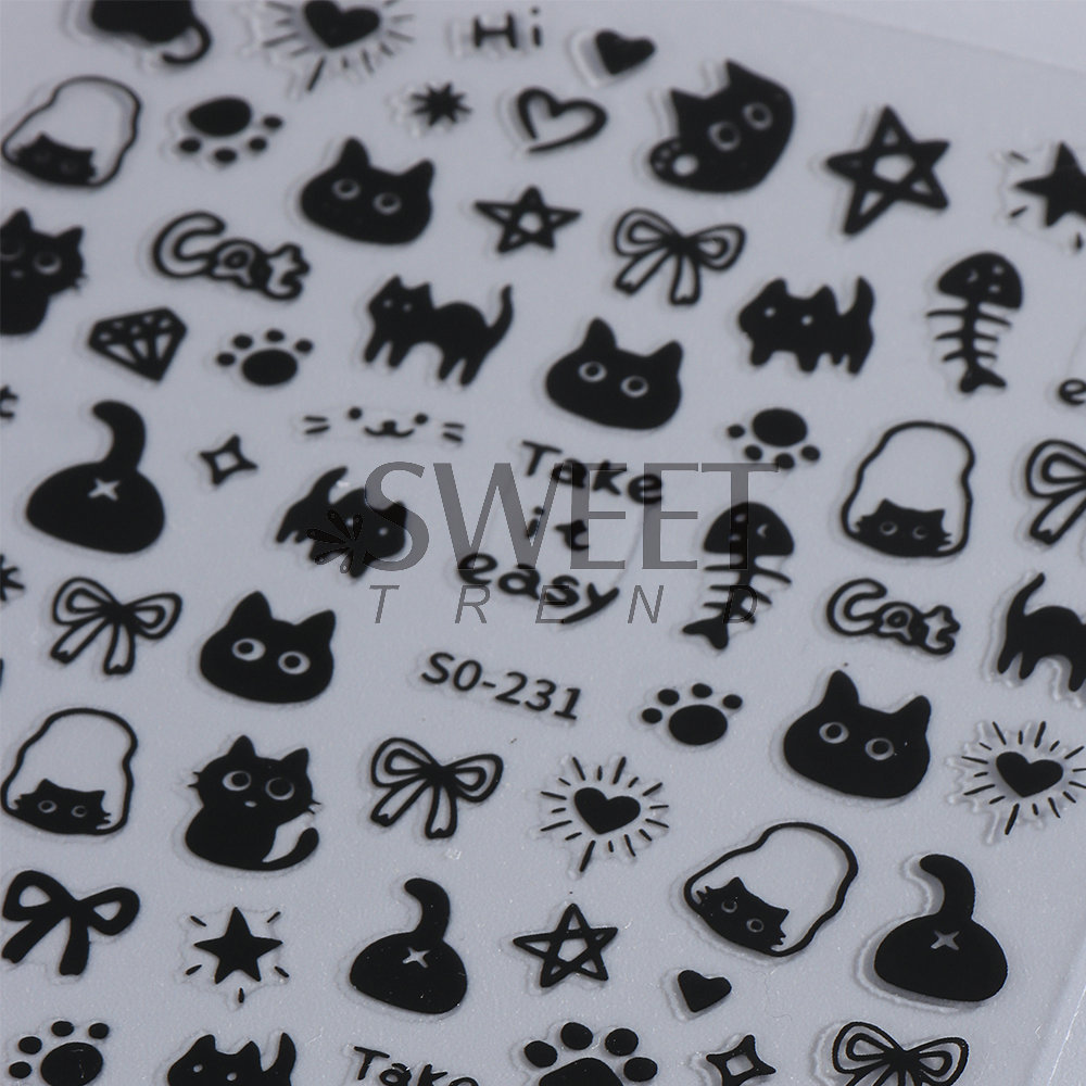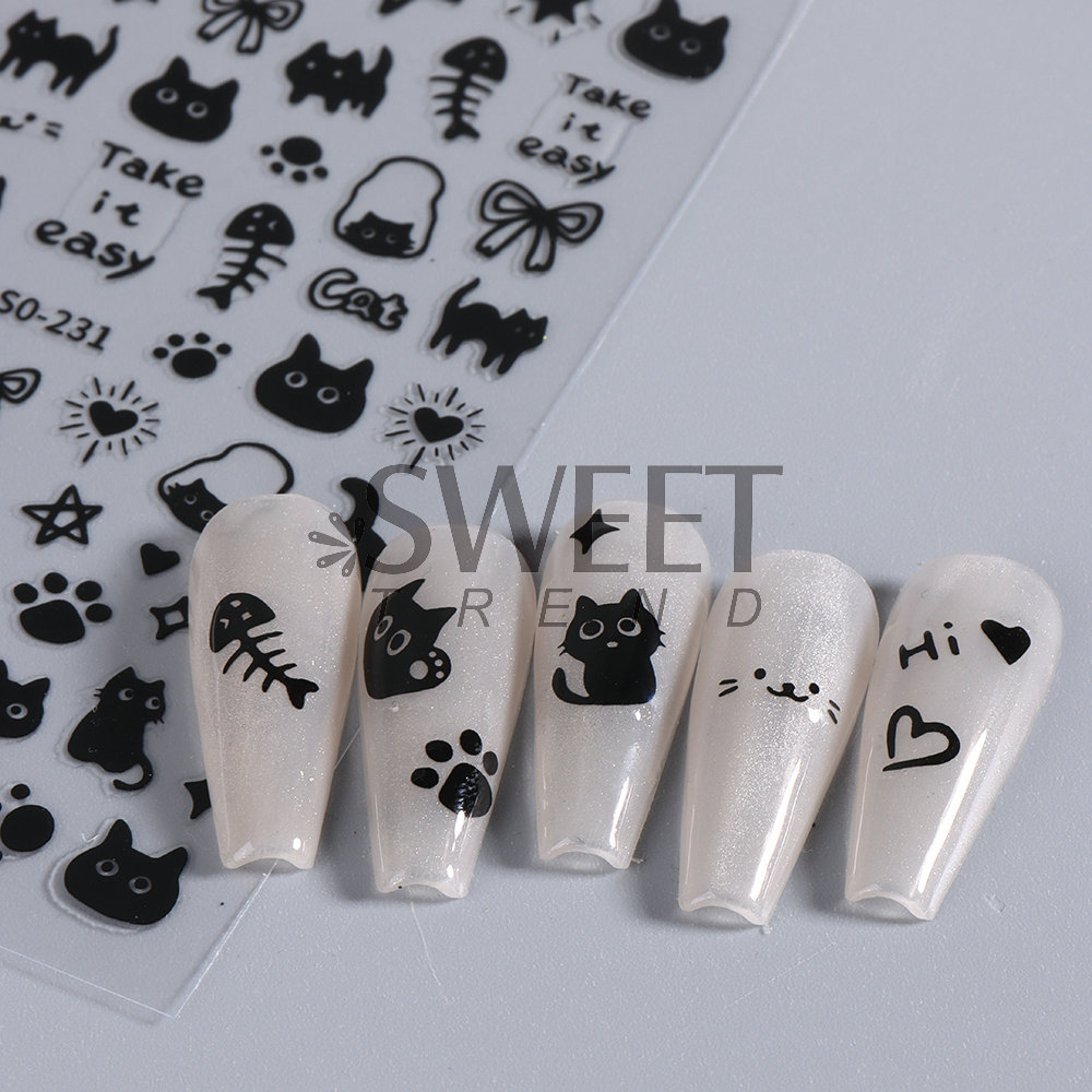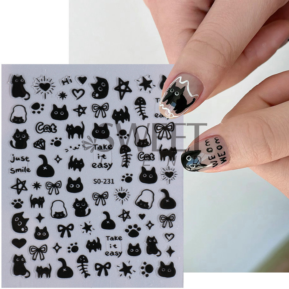 인터넷 유명 만화 네일 아트 스티커 Ins 철자 저녁 폭발 흑백 골드와 실버 귀여운 낙서 새끼 고양이 별 다시 접착 스티커스토어 가기