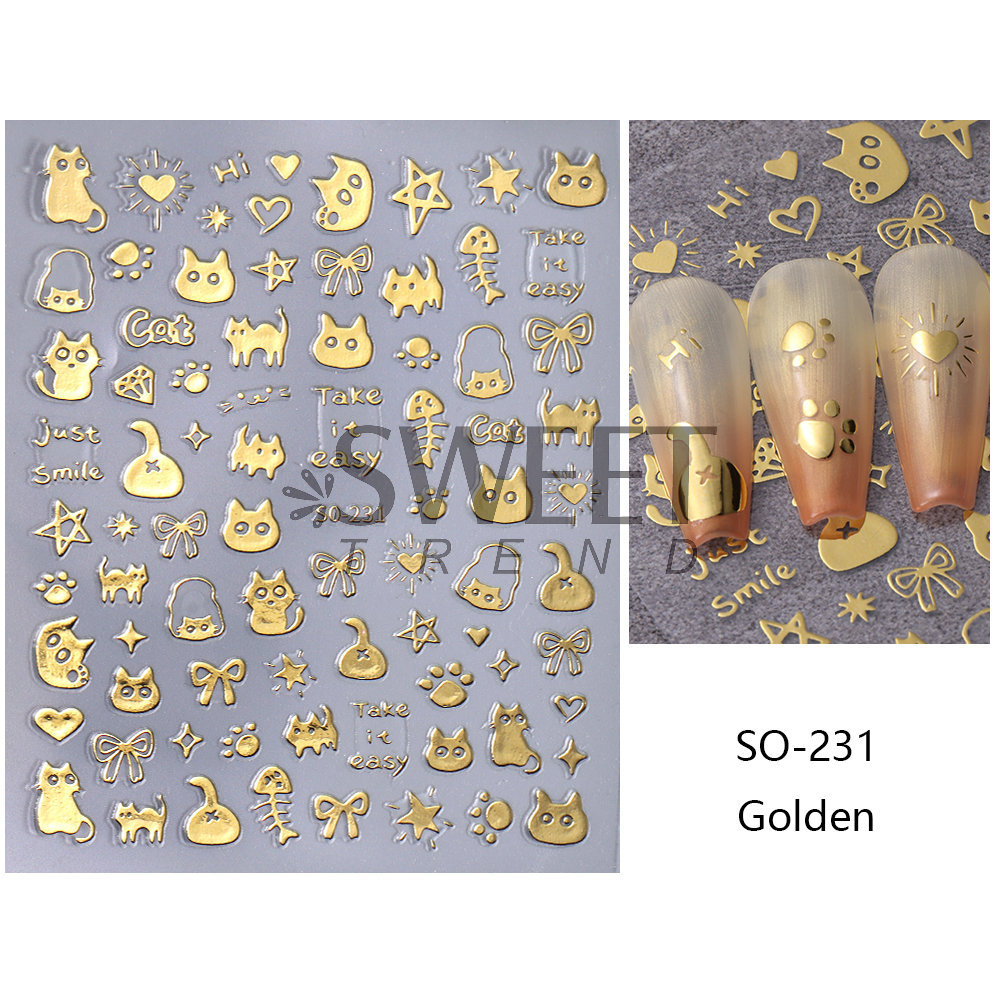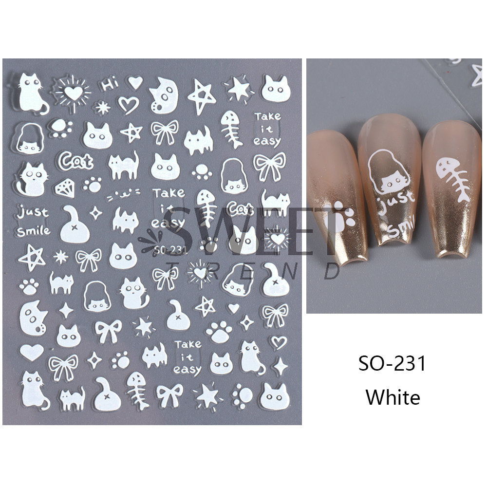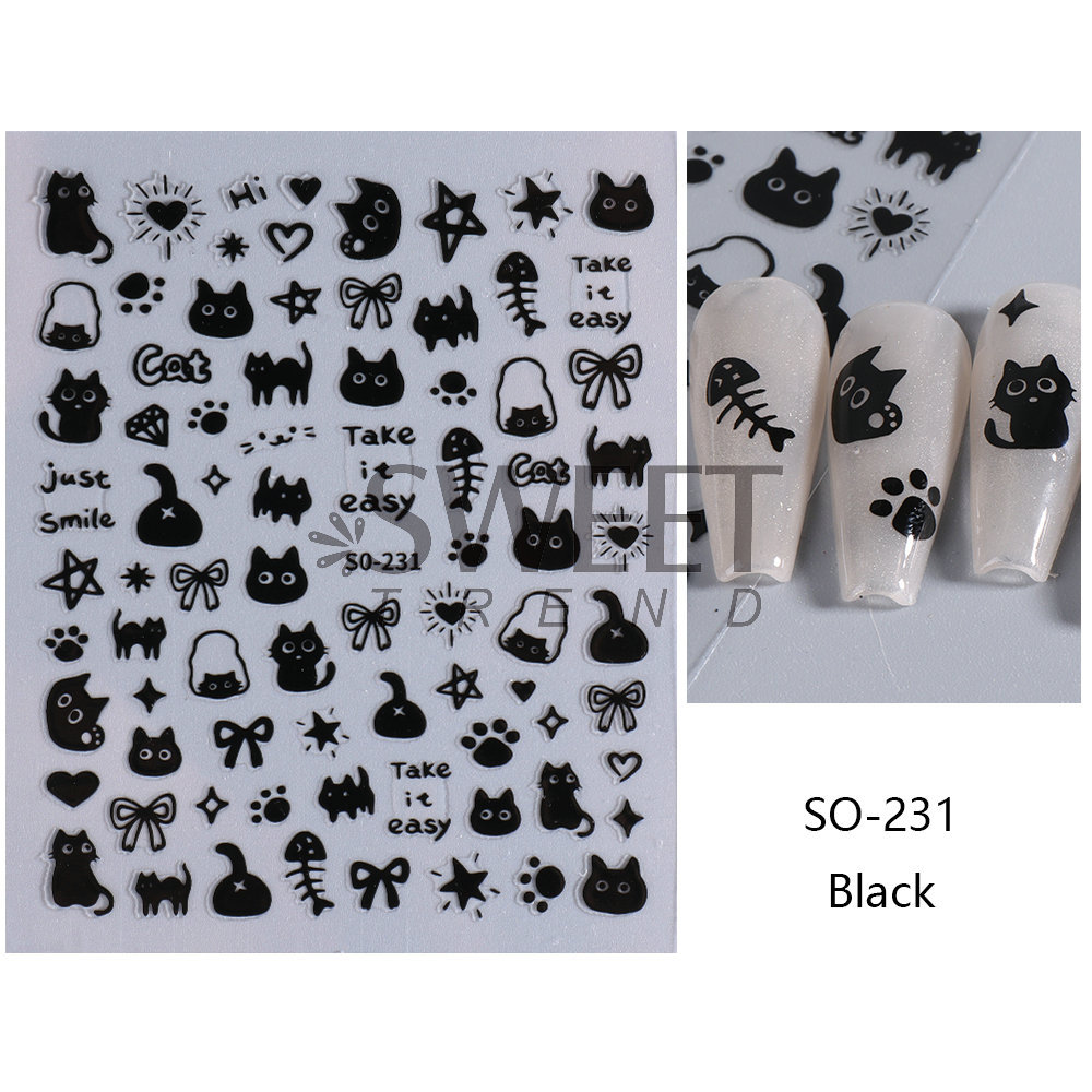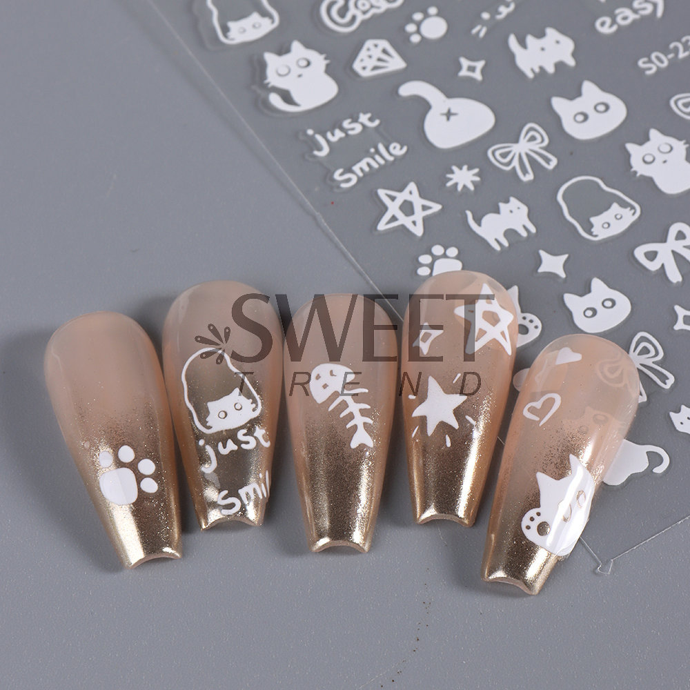 인터넷 유명 만화 네일 아트 스티커 Ins 철자 저녁 폭발 흑백 골드와 실버 귀여운 낙서 새끼 고양이 별 다시 접착 스티커스토어 가기