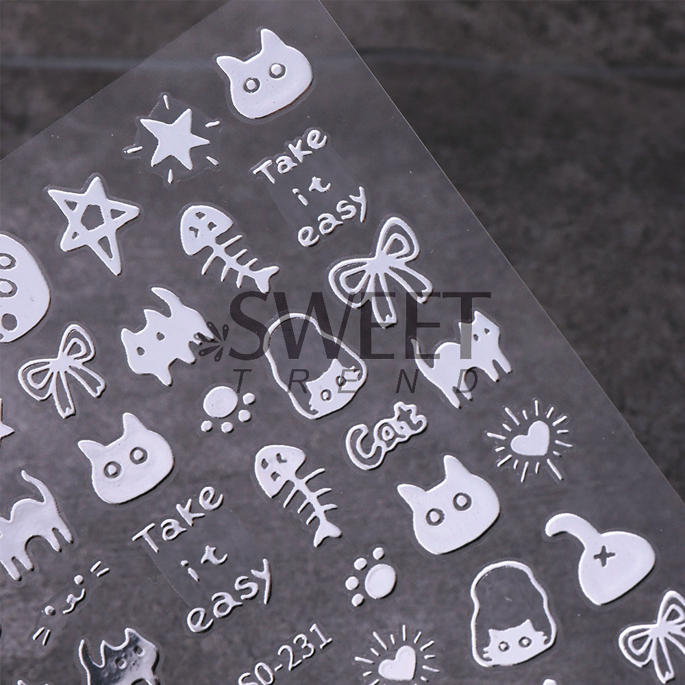 인터넷 유명 만화 네일 아트 스티커 Ins 철자 저녁 폭발 흑백 골드와 실버 귀여운 낙서 새끼 고양이 별 다시 접착 스티커