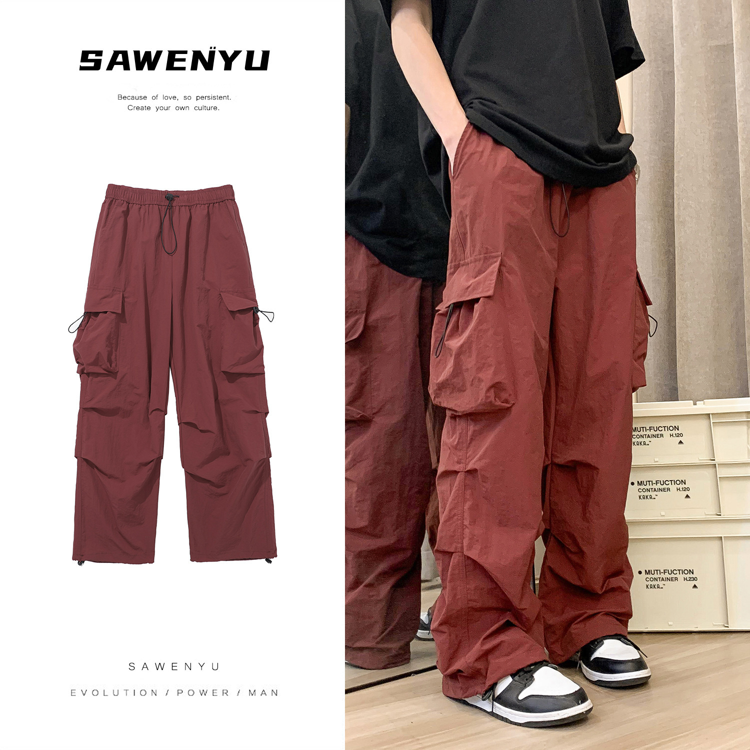 주의 바지 남자의 가을 새로운 일본 스타일 레트로 하이 스트리트 강아지 핸섬 충전 바지 멀티 포켓 낙하산 캐주얼 바지