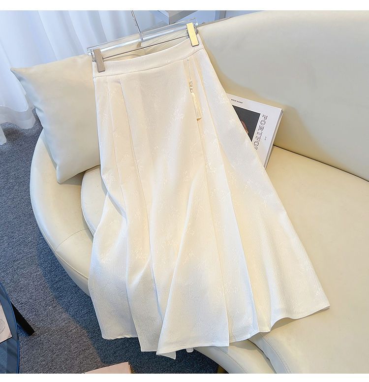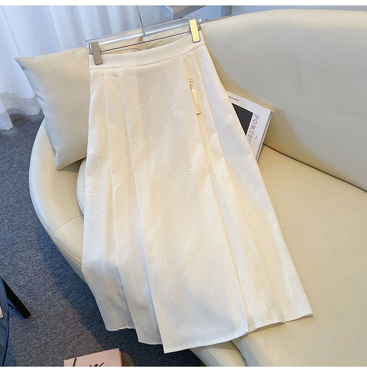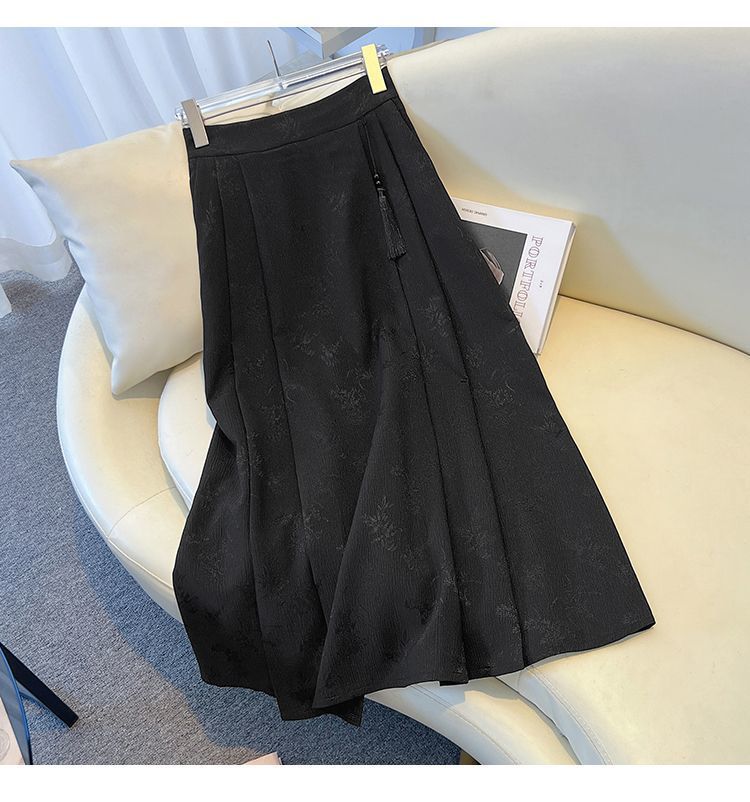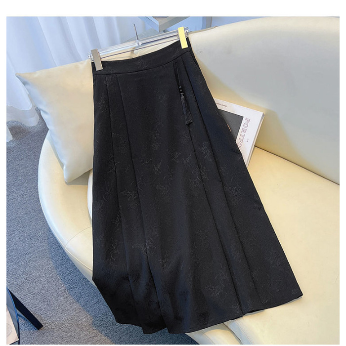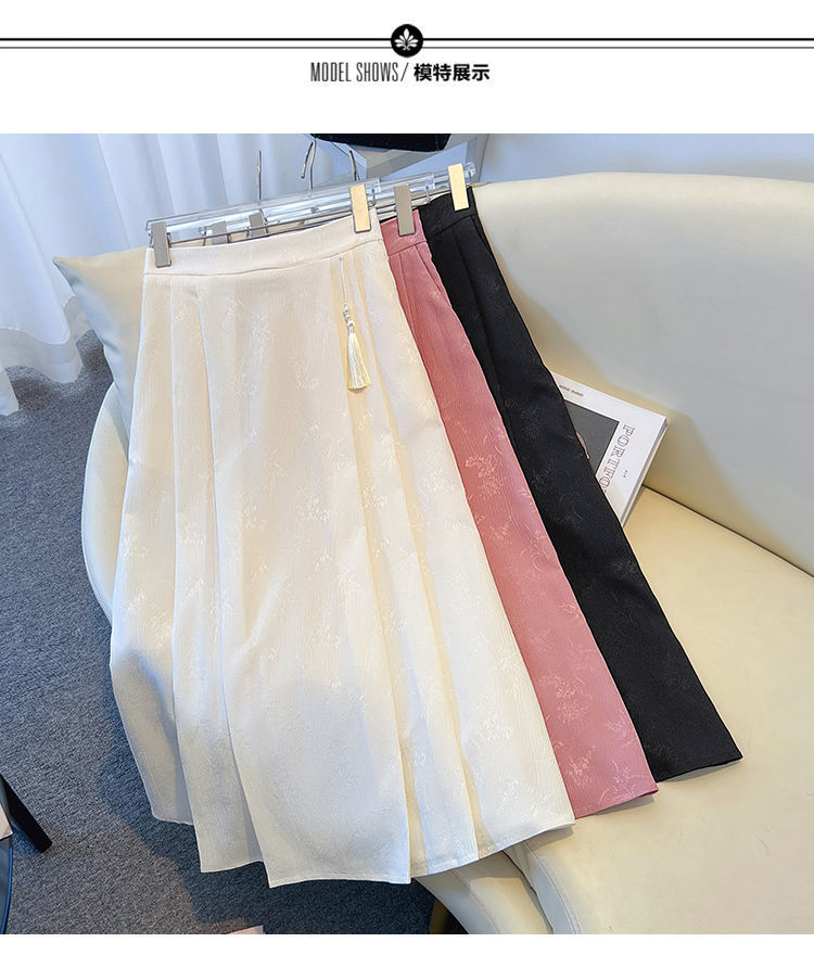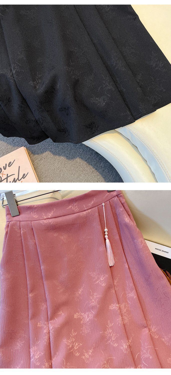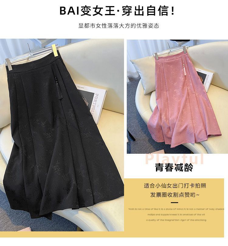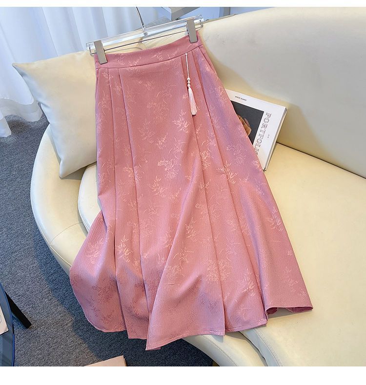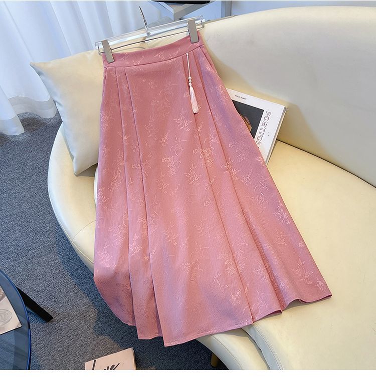 국가 스타일 자카드 핑크 스커트 여성의 새로운 중국 스타일 말 얼굴 긴 치마 봄 2024 새로운 우아한 A 라인 조커 스커트스토어 가기