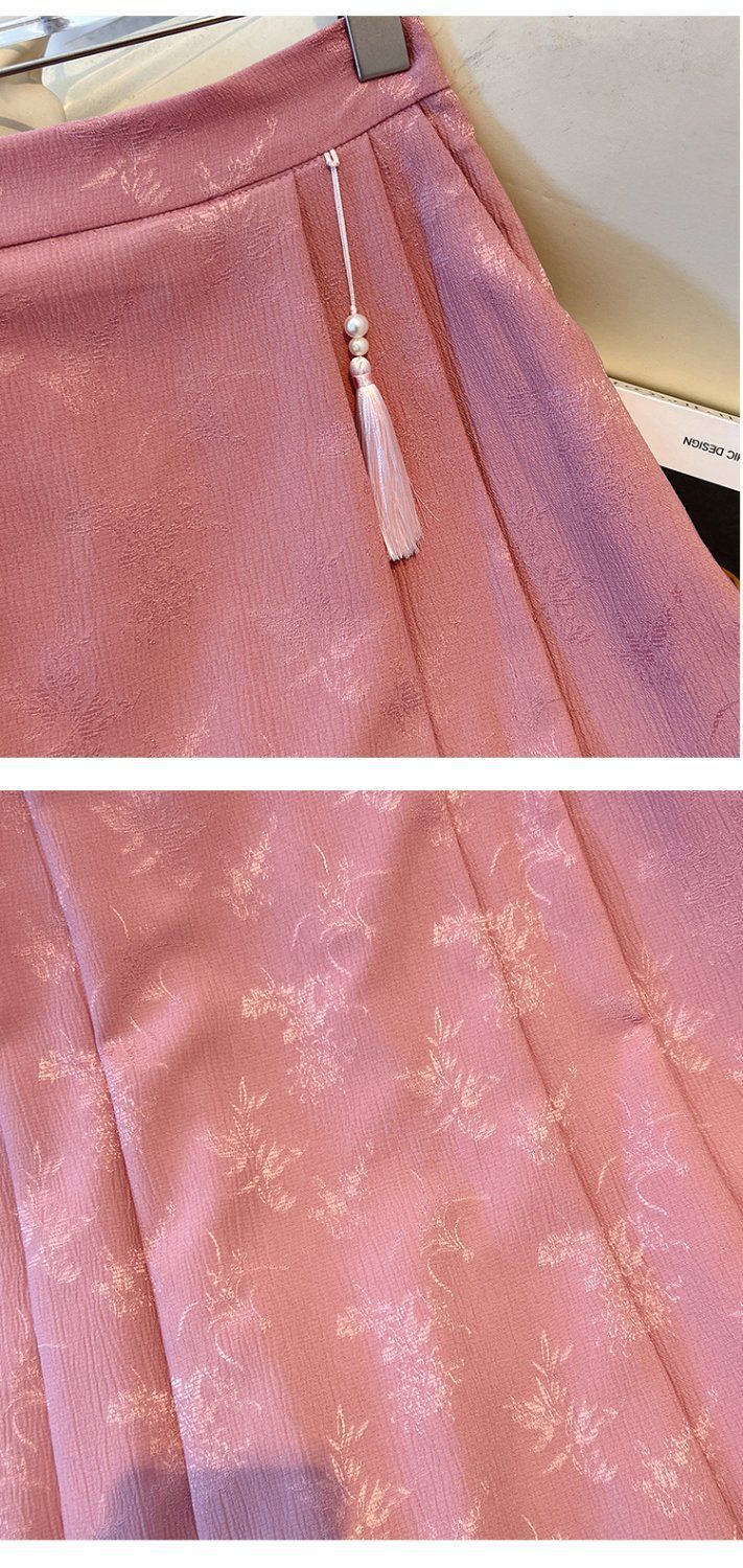국가 스타일 자카드 핑크 스커트 여성의 새로운 중국 스타일 말 얼굴 긴 치마 봄 2024 새로운 우아한 A 라인 조커 스커트