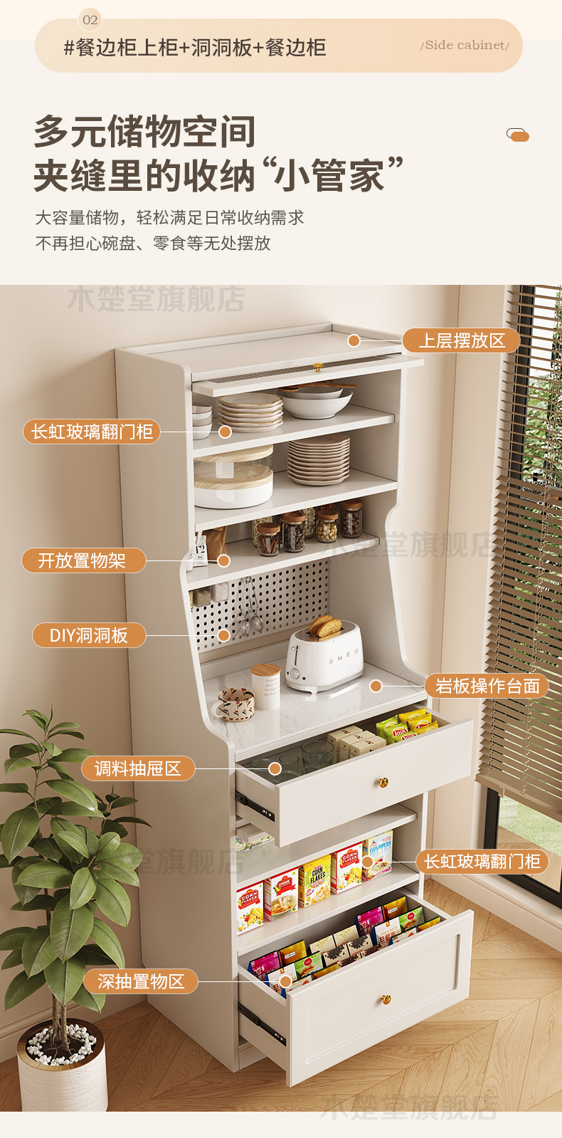 단단한 나무 사이드 보드 작은 아파트 가구 현대 간단한 통합 벽 차 캐비닛 주방 저장 캐비닛 갭 신제품