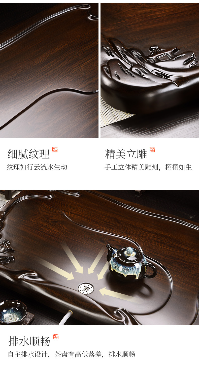 정통 검은 샌달 우드 차 트레이 세트 단단한 나무 자동 통합 유도 쿠커 물 끓는 차 테이블 쿵푸 차 세트 트레이스토어 가기