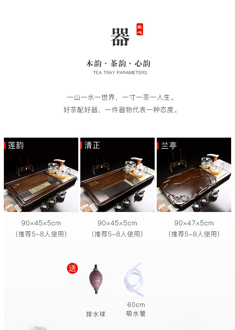 • Qingzheng (90*45*5cm)[검은 백단] [단일 차 트레이]]