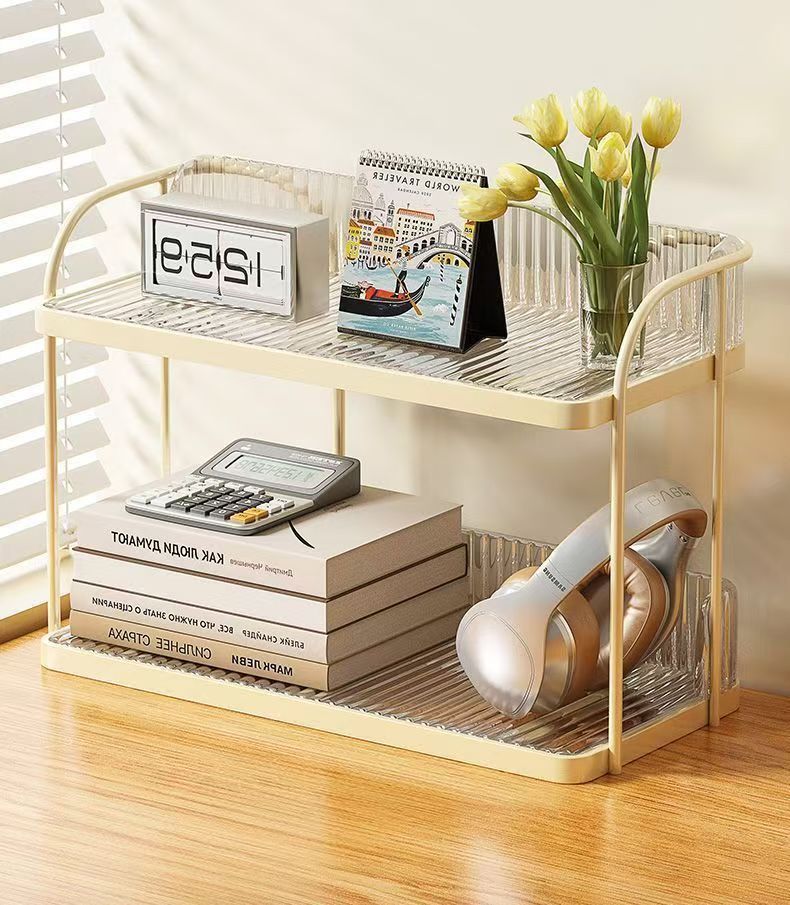 밝은 고급 주방 테이블 더블 레이어 카운터 탑 스토리지 랙 조미료 디스플레이 랙 저장 테이블 욕실 꽃 랙 데스크탑 선반스토어 가기
