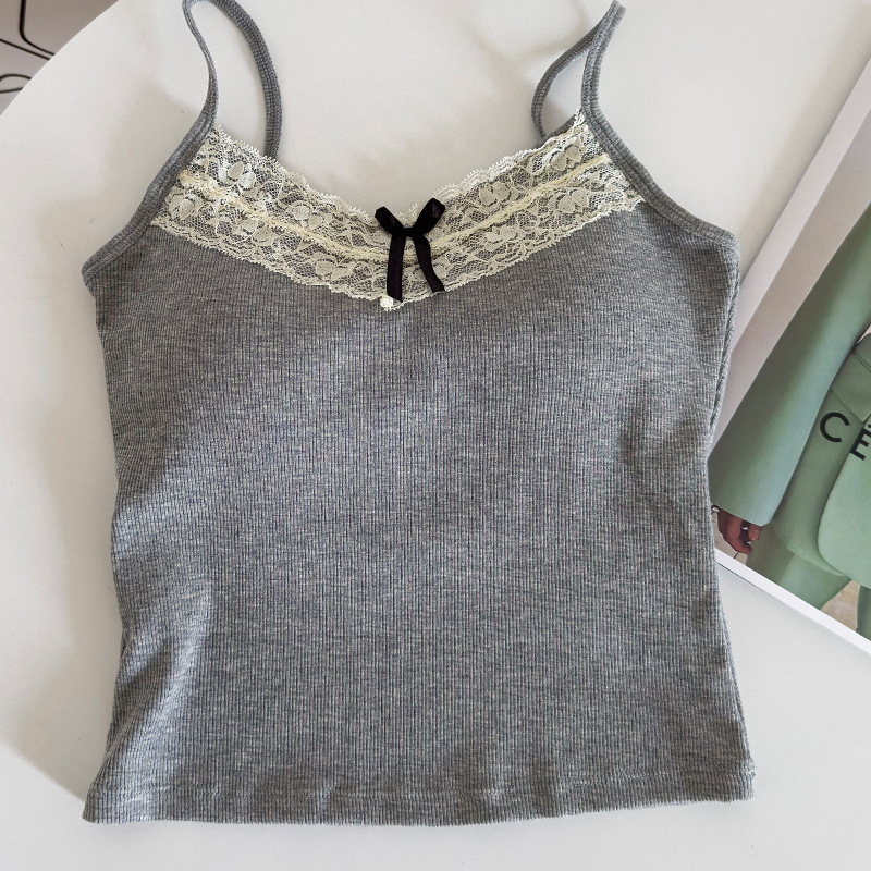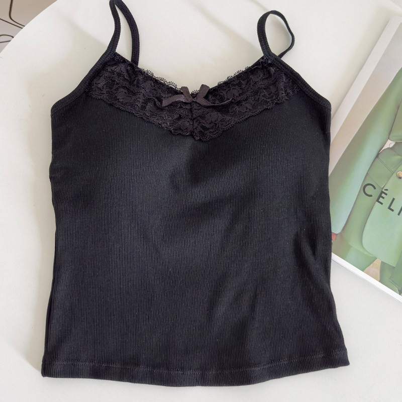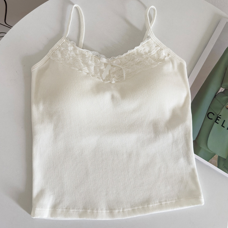 봄과 여름 2024 새로운 스타일 레이스 백 튜브 탑 슬링 가슴 패드 내부 착용 조끼 여성용 민소매 베이스 탑스토어 가기