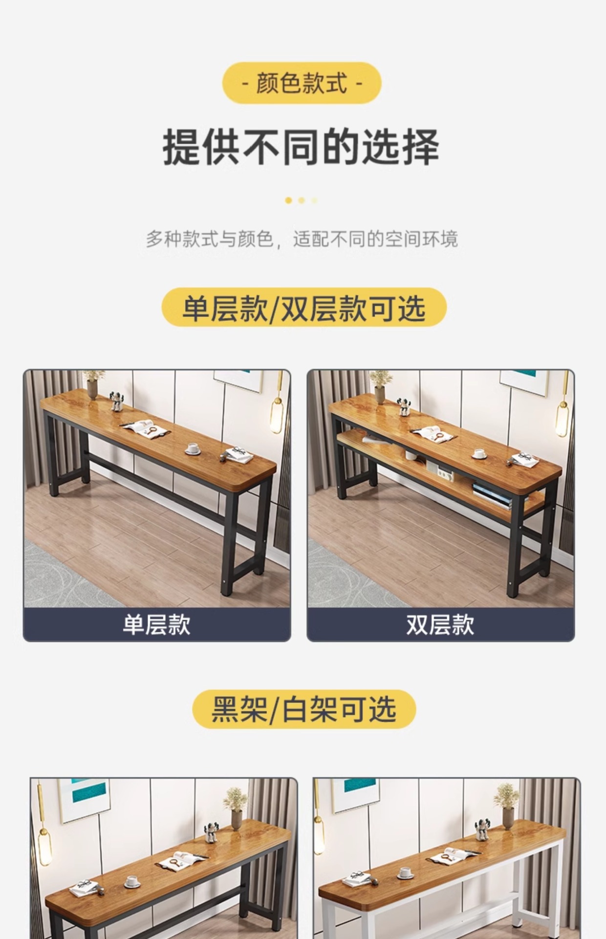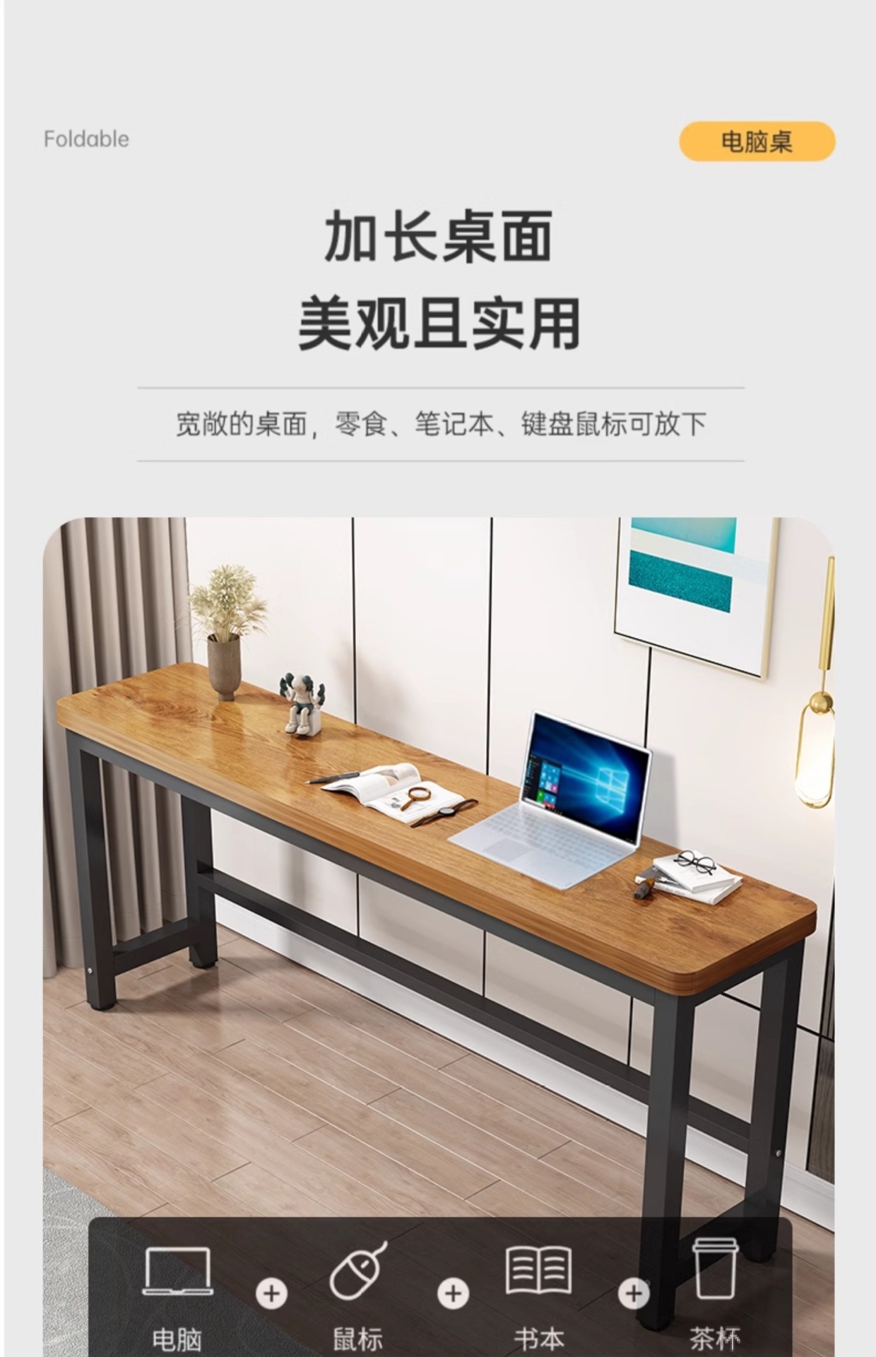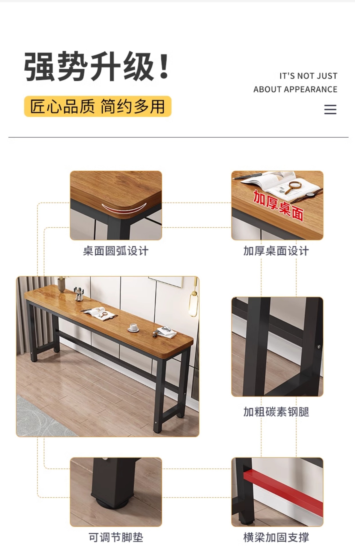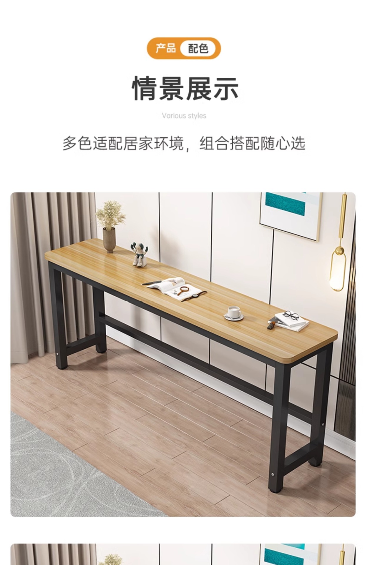 심플한 긴 책상, 현대적인 침실용 가정 사무실용 소형 아파트용 벽걸이형 좁은 책상, 컴퓨터용