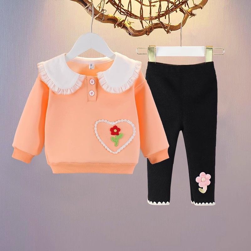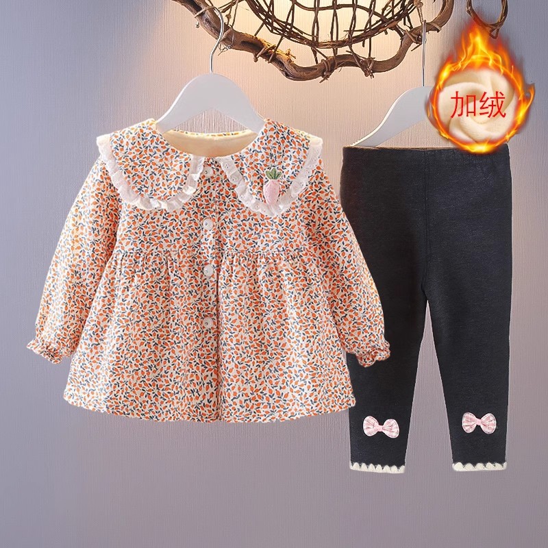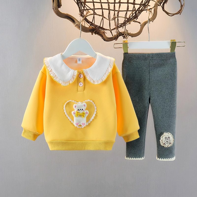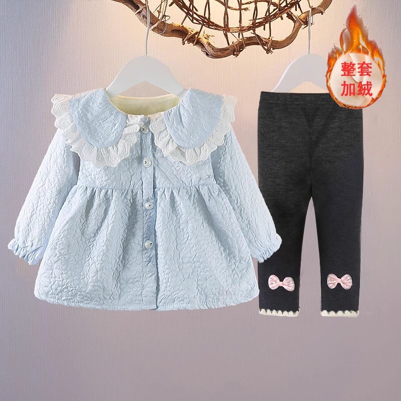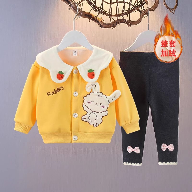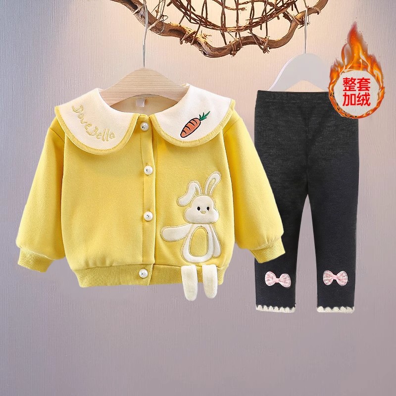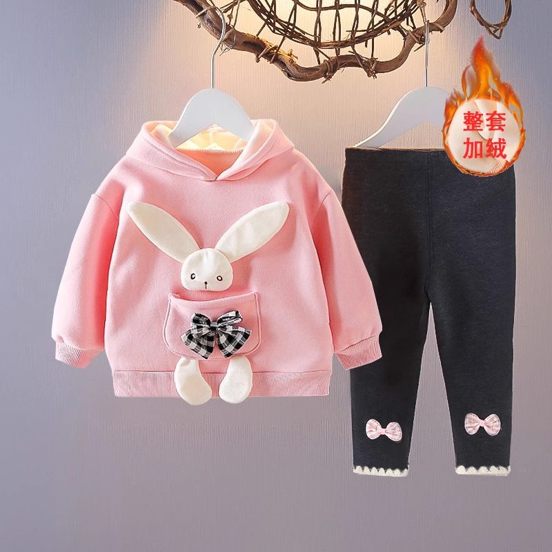 가을 겨울 기모 소녀 코트 세트 어린이 어린이 귀여운 만화 아기 작은 소녀 공주 외국 스타일 아기 소녀