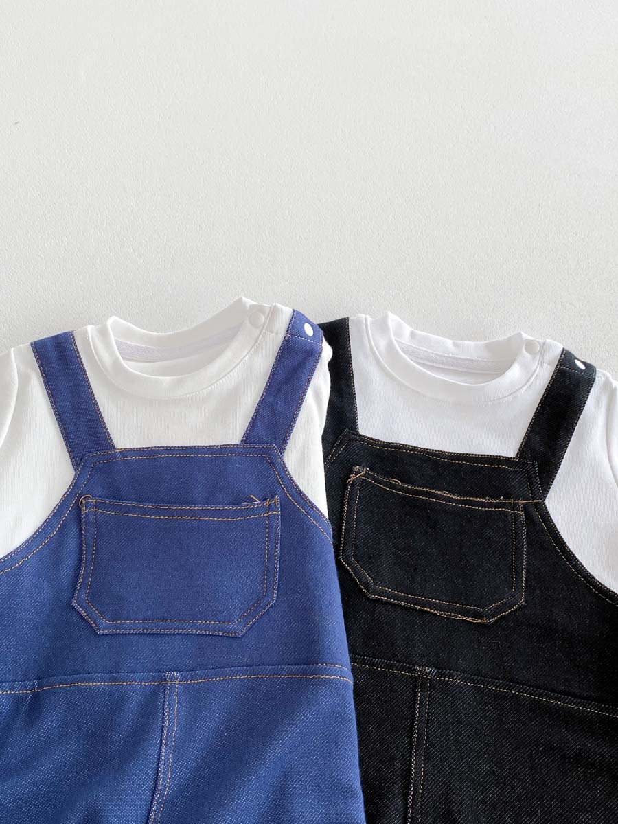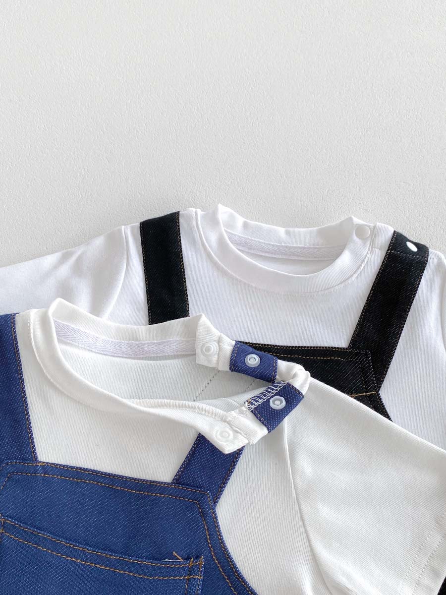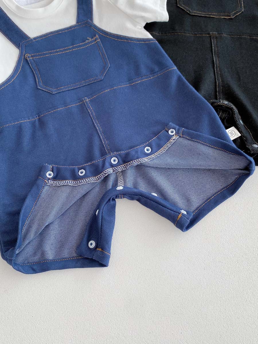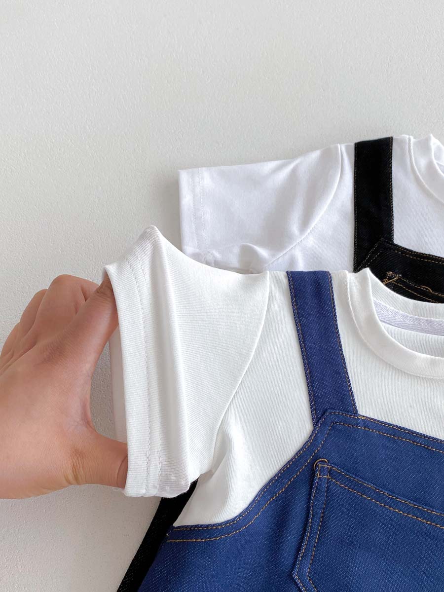 인스타일 한국식 소년 여름 반팔 점프 수트 가짜 투피스 서양식 여자 등반 세트