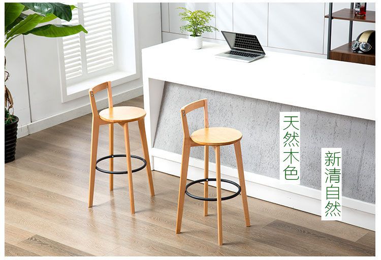 바 의자 노르딕 솔리드 우드 현대 간단한 창조적 인 바 의자 새로운 중국 스타일 발코니 홈 라이트 럭셔리 등받이 높은 의자스토어 가기