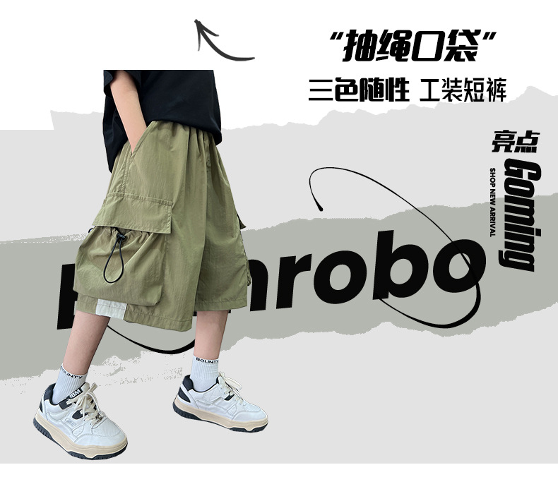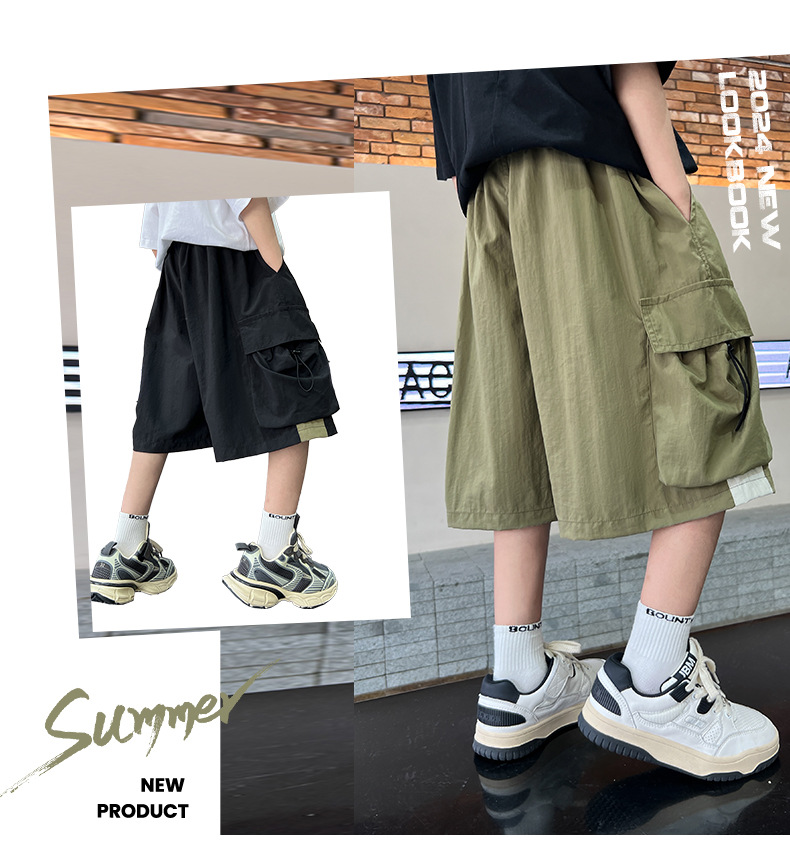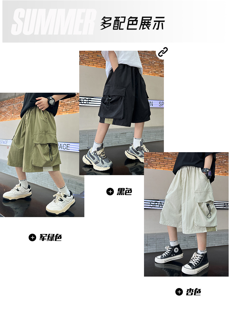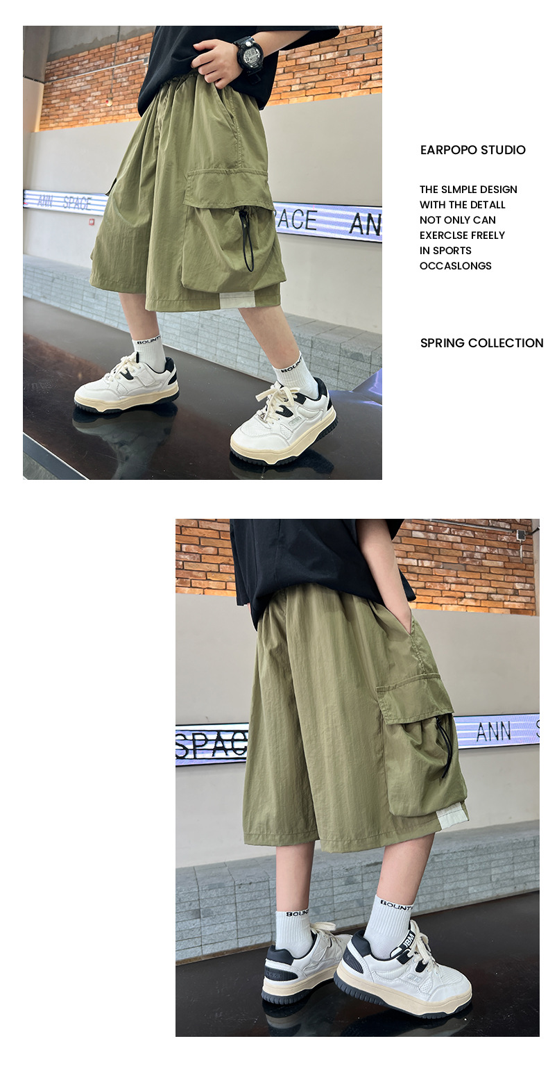 여름 중다 소년 빠른 건조 도구 반바지 새로운 아동복 어린이 소년 큰 포켓 캐주얼 바지 느슨한 머리