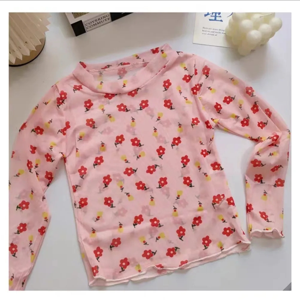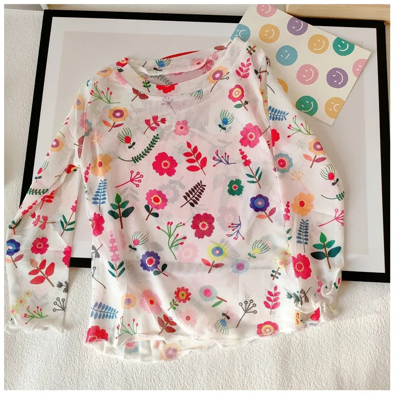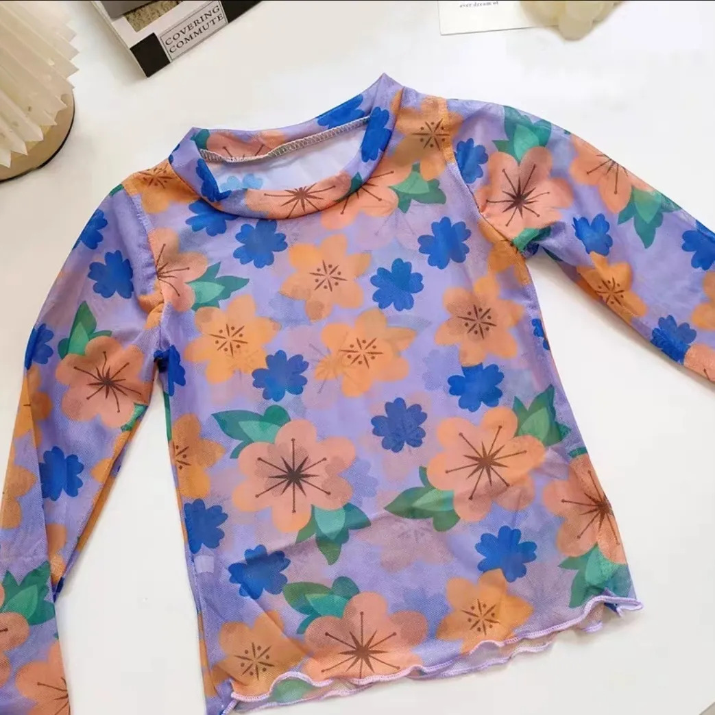 여자 여름 긴팔 티셔츠 아기 서양식 어린이 맞춤형 트렌디 브랜드 한국식 현맛 꽃 선 스크린베이스 셔츠