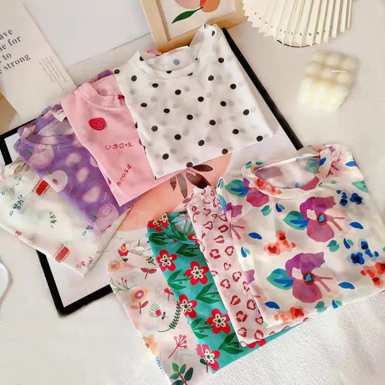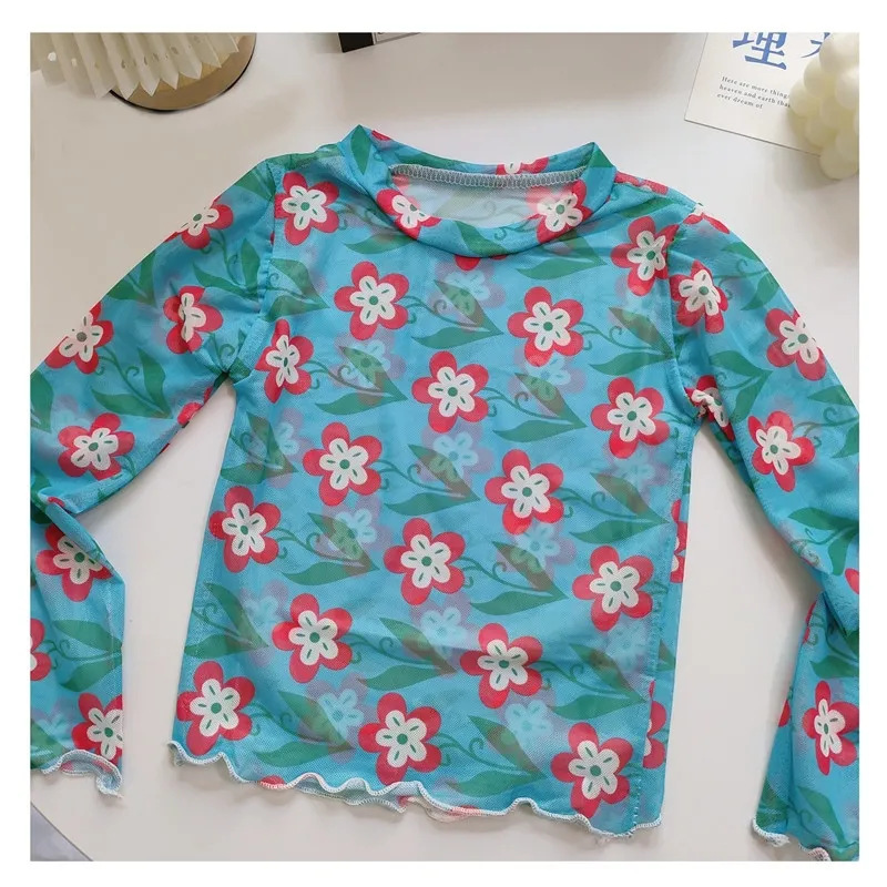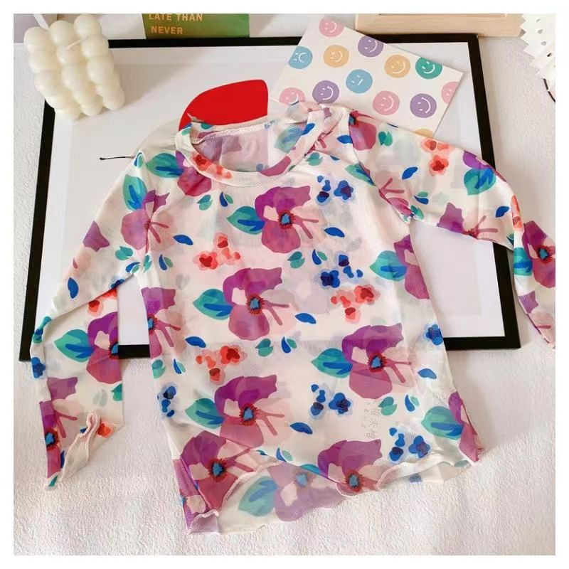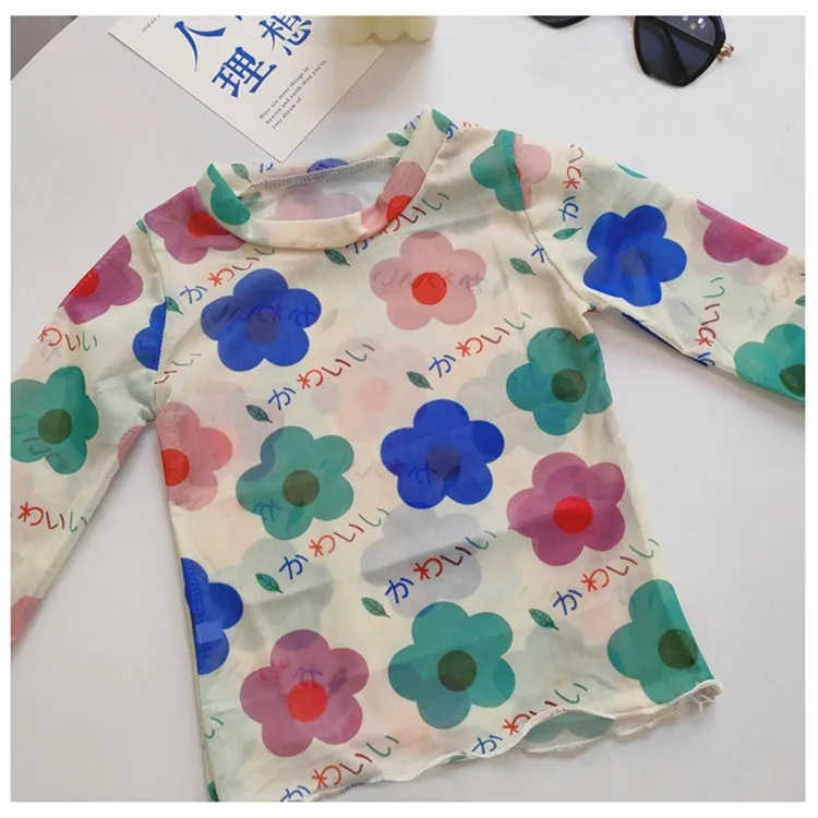 여자 여름 긴팔 티셔츠 아기 서양식 어린이 맞춤형 트렌디 브랜드 한국식 현맛 꽃 선 스크린베이스 셔츠스토어 가기
