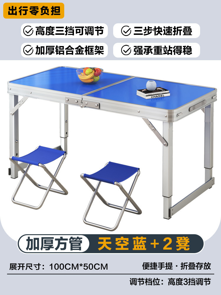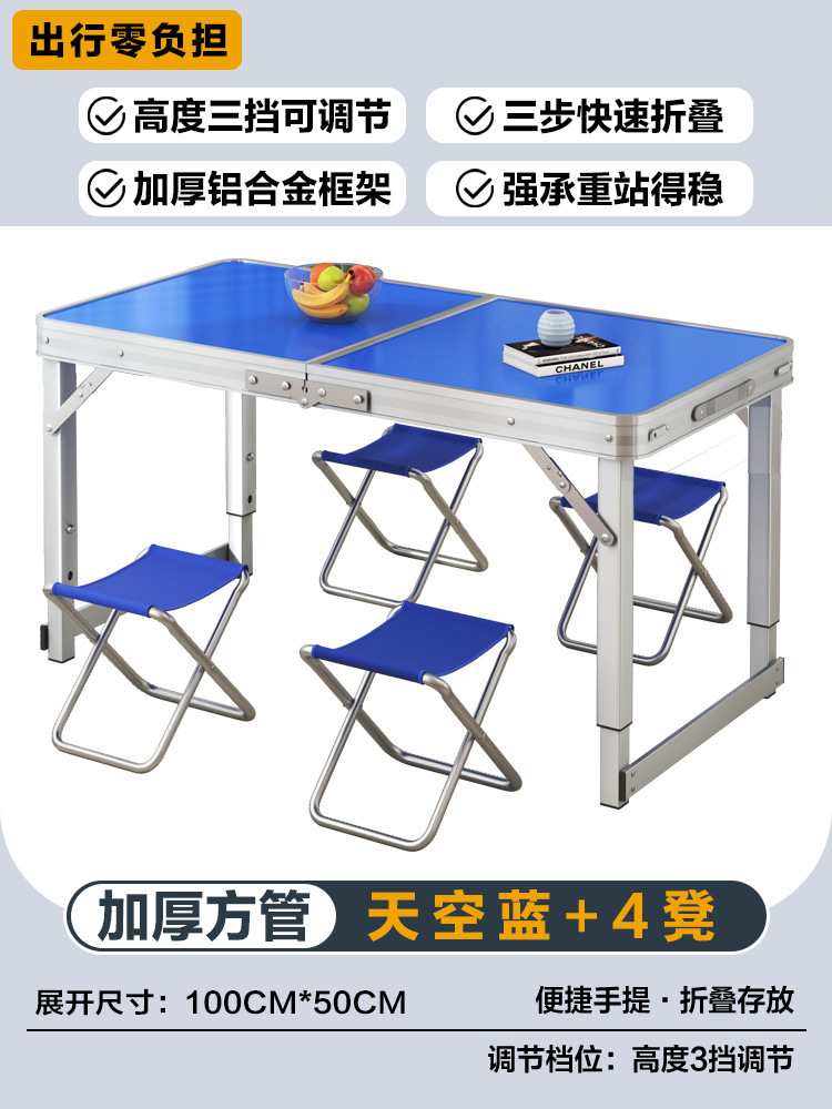 • 100cm 스카이 블루 [설치 불필요] - 업그레이드 사각 다리 + 의자 2개