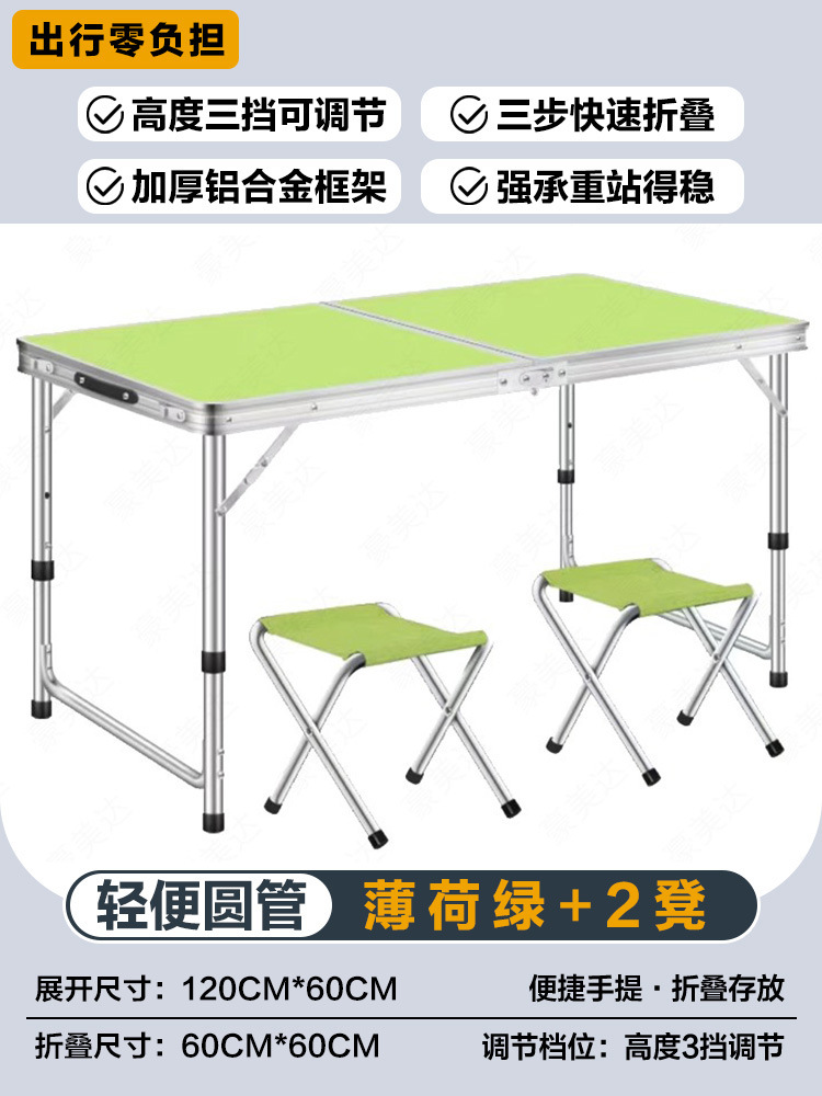 • 120cm 콰이어트 그린 [설치 불필요] - 업그레이드된 사각 다리, 스툴 2개 포함