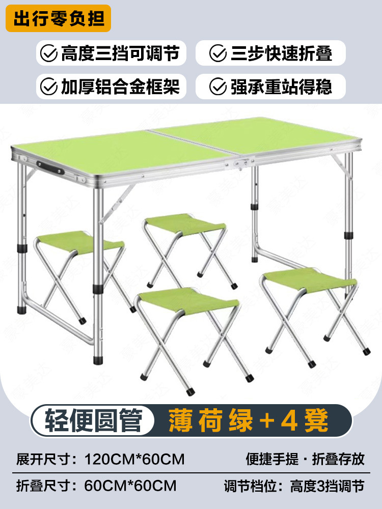 • 120cm 세레니티 그린 [설치 불필요] - 업그레이드된 사각 다리, 스툴 4개 포함