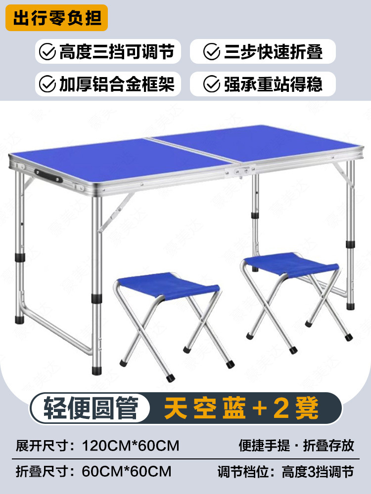 • 120cm 스카이블루 [설치 불필요] - 업그레이드된 사각 다리, 스툴 2개 포함
