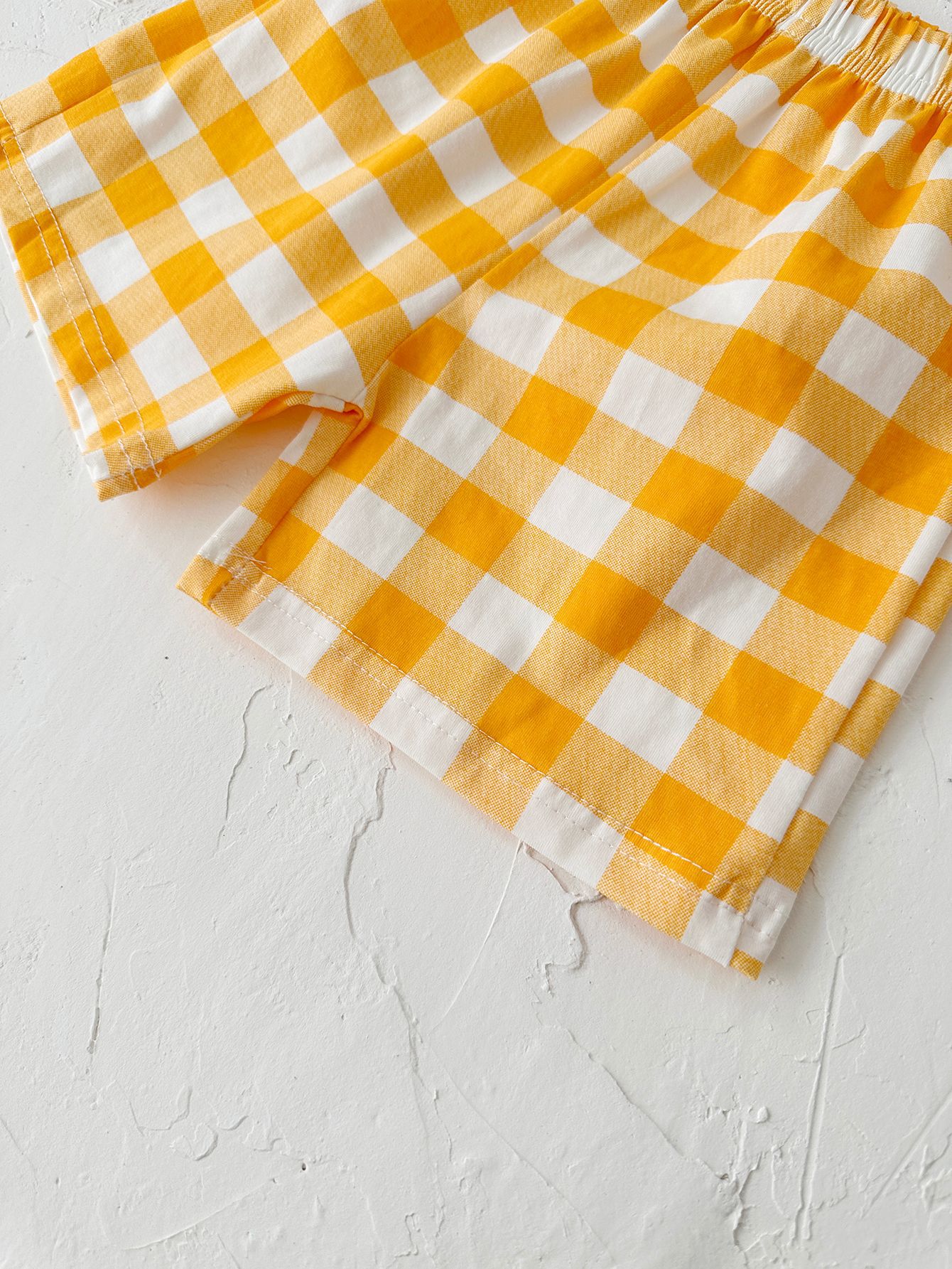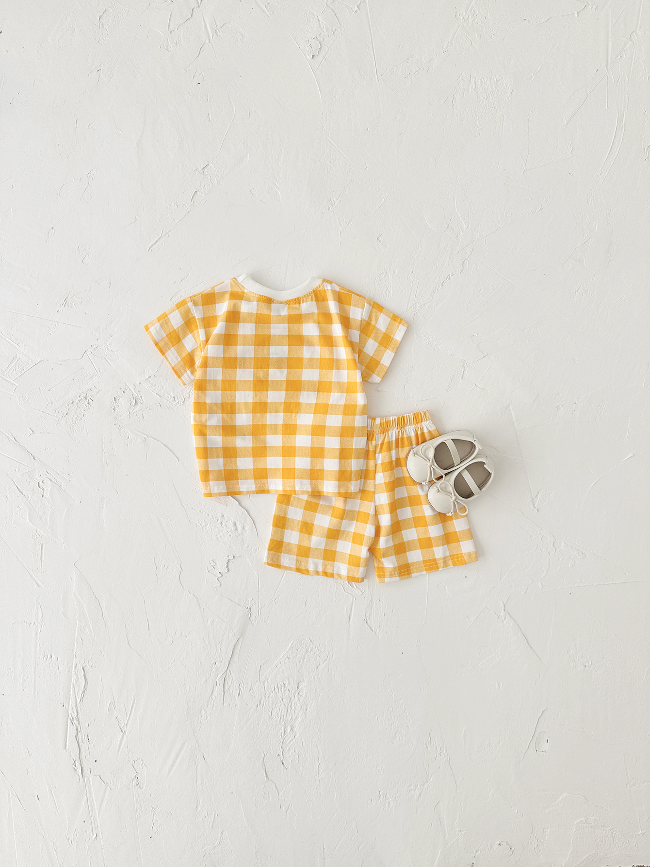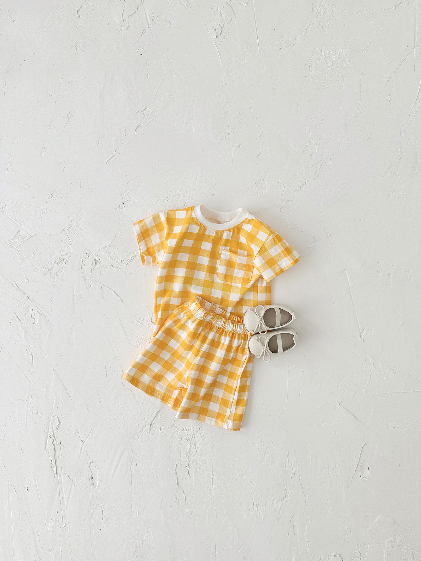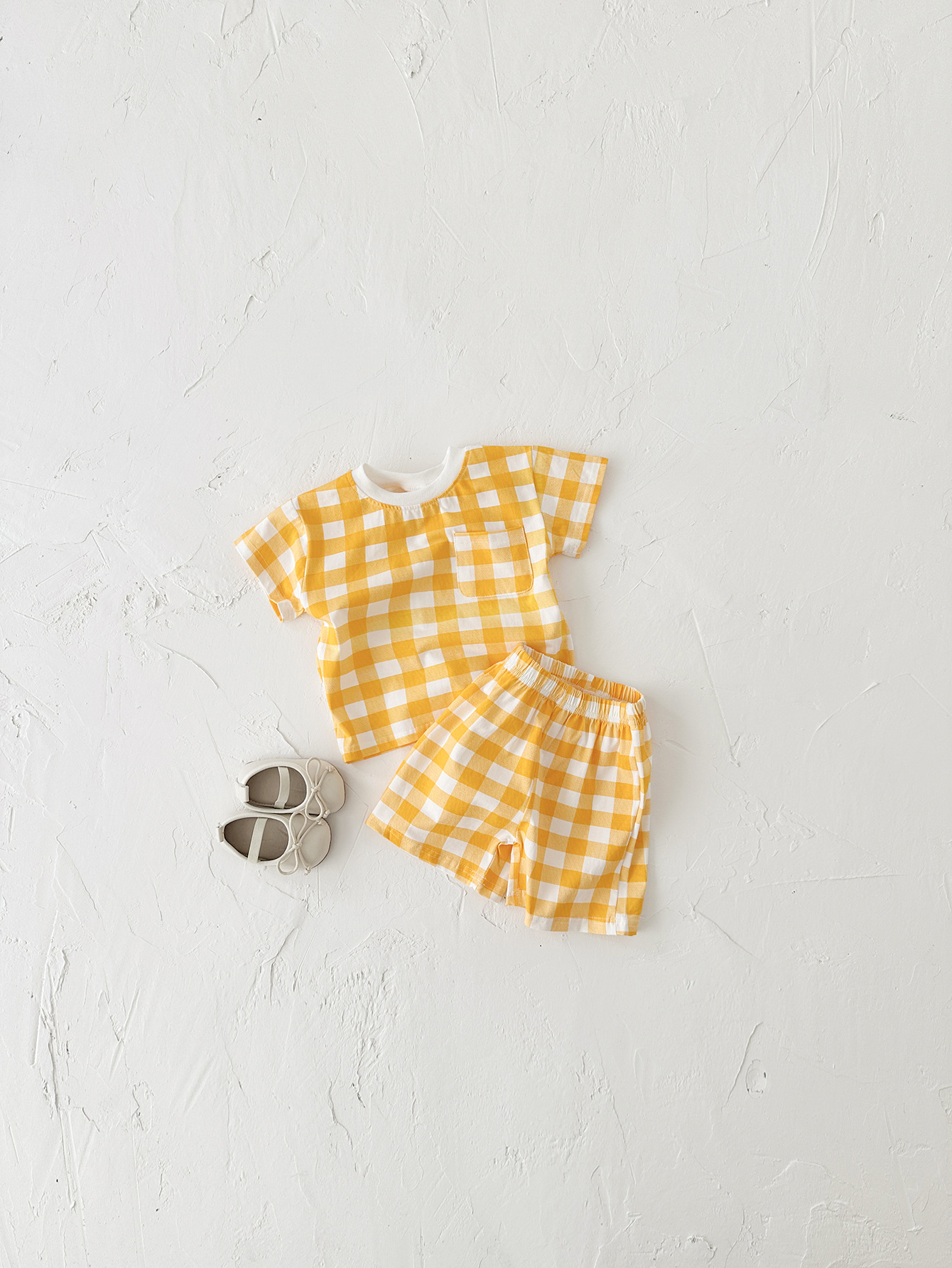 여름 어린이 귀여운 격자 무늬 반팔 세트 남학생과 여학생을위한 한국식 투피스 국경 의상스토어 가기