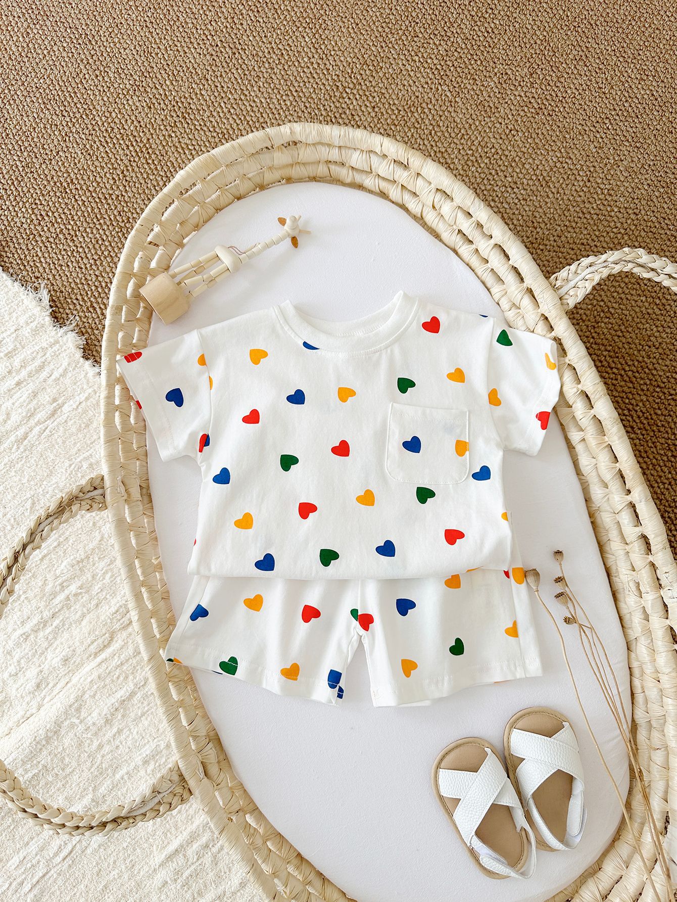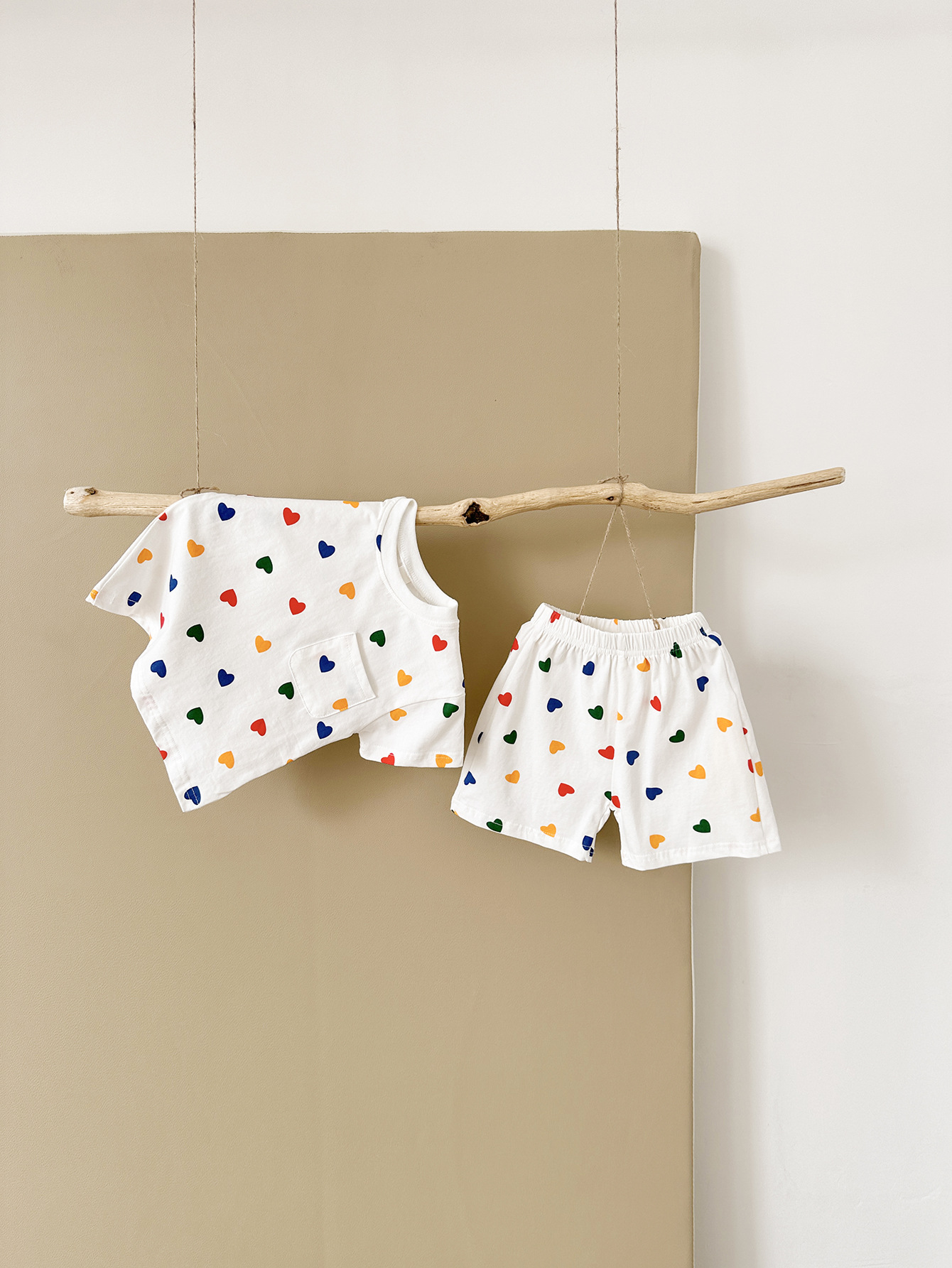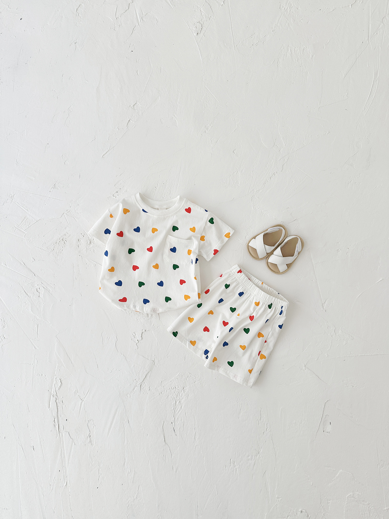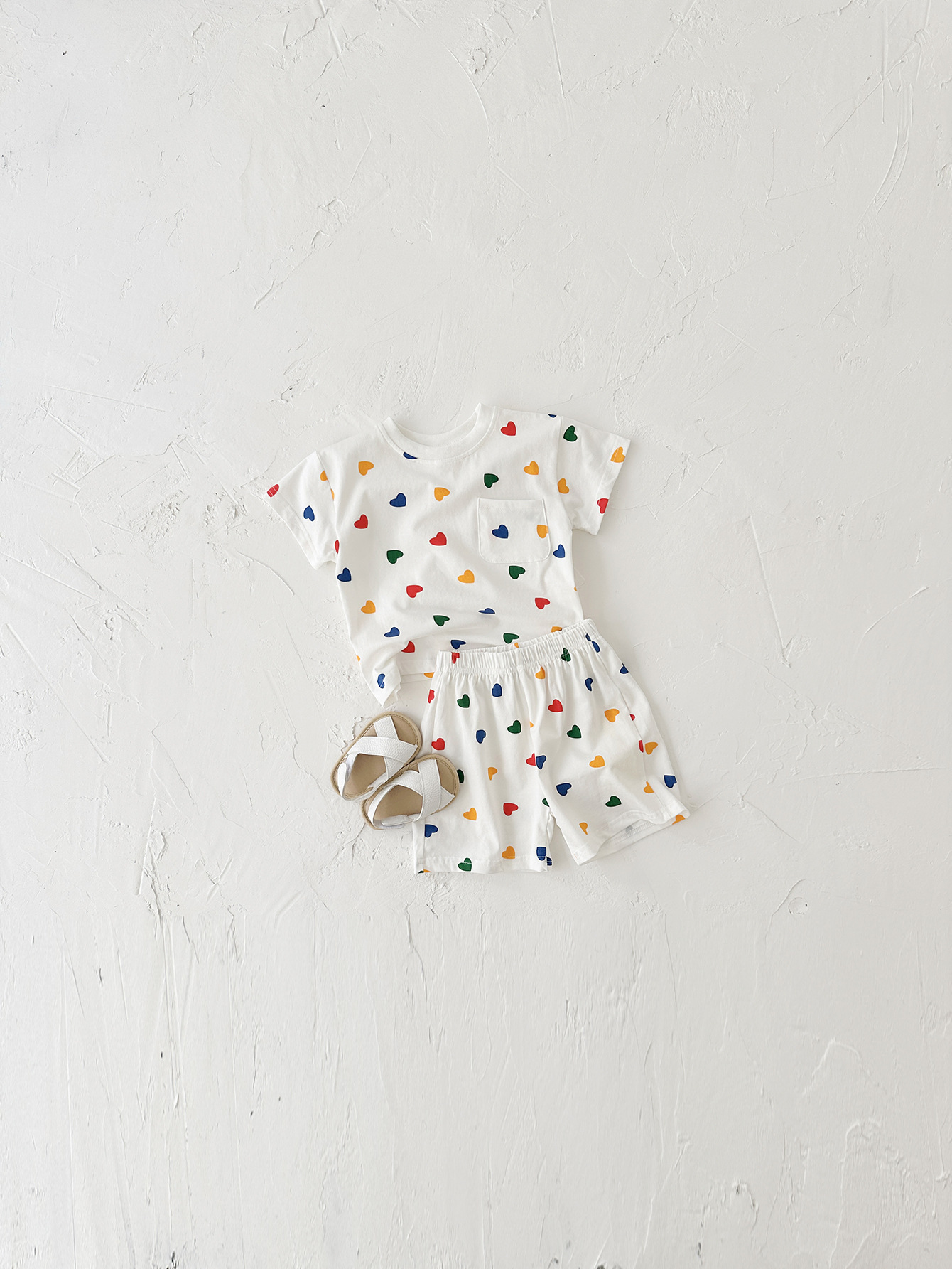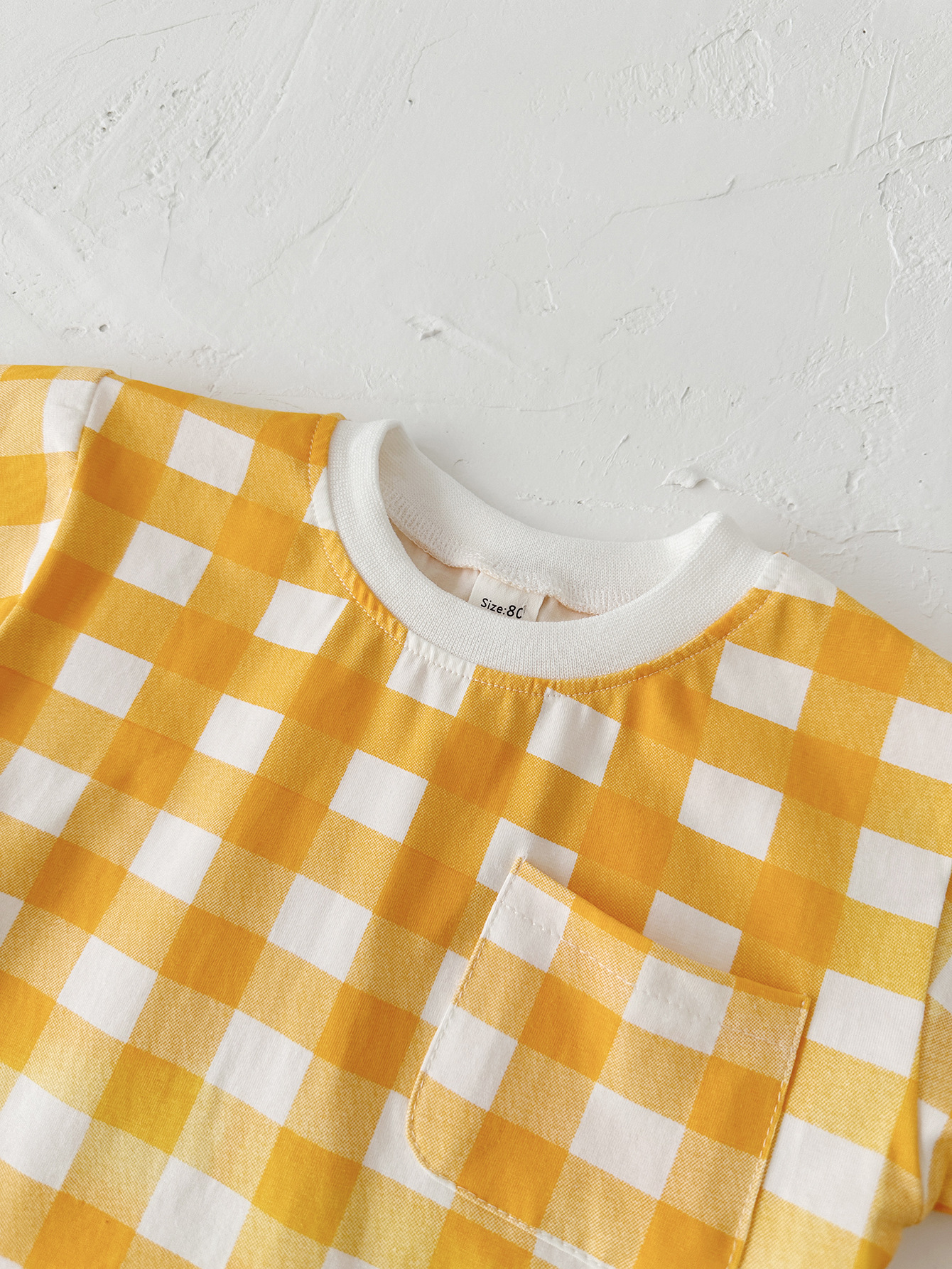 여름 어린이 귀여운 격자 무늬 반팔 세트 남학생과 여학생을위한 한국식 투피스 국경 의상스토어 가기