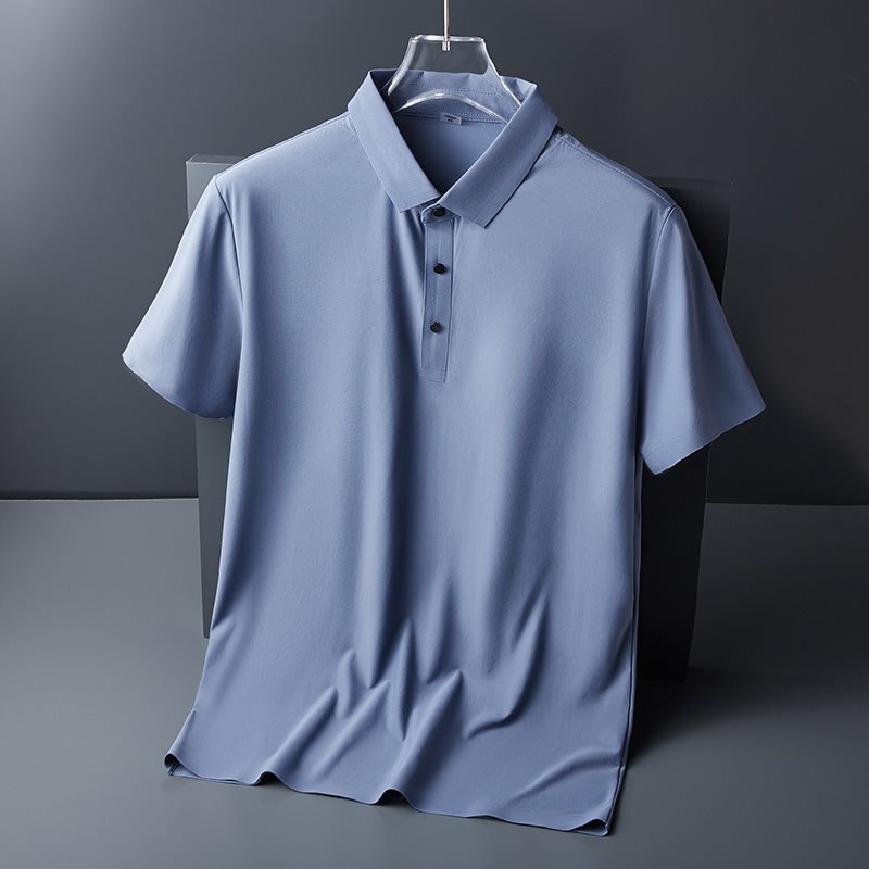 아빠 여름 아이스 실크 반팔 티셔츠 남자 여름 중년 렐폴로 셔츠 노인 반소매 티셔츠 탑
