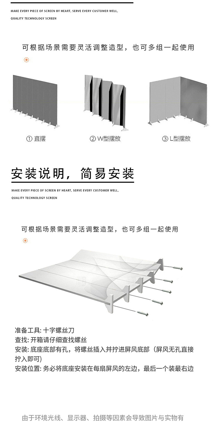 사무실 스크린 파티션 주문 가능한 로고 이동식 접이식 간단한 현대 전면 책상 배플 디자인 바닥 접기