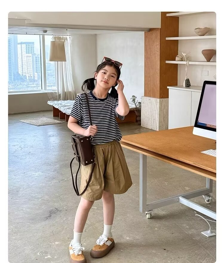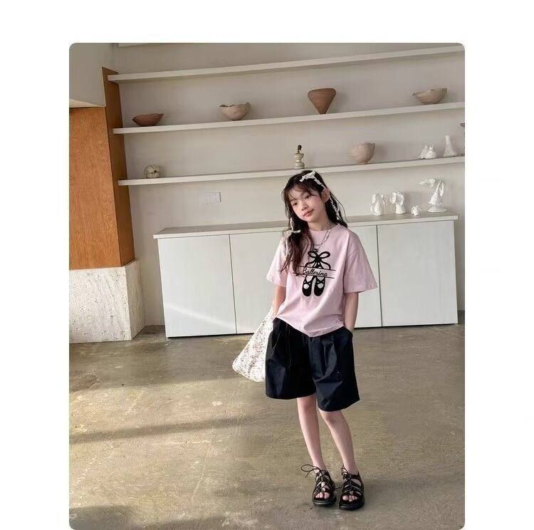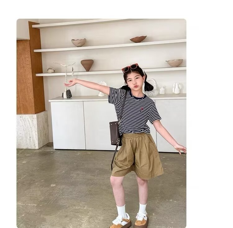 소녀 반바지 여름 느슨한 2024 새로운 어린이 올매치 A 라인 캐주얼 바지 얇은 아동복 바지 여름 착용스토어 가기