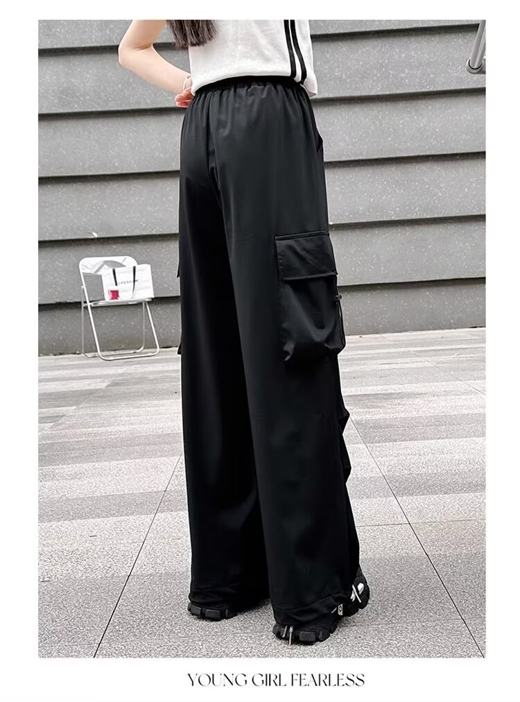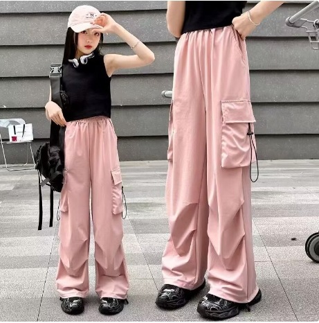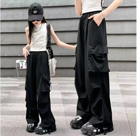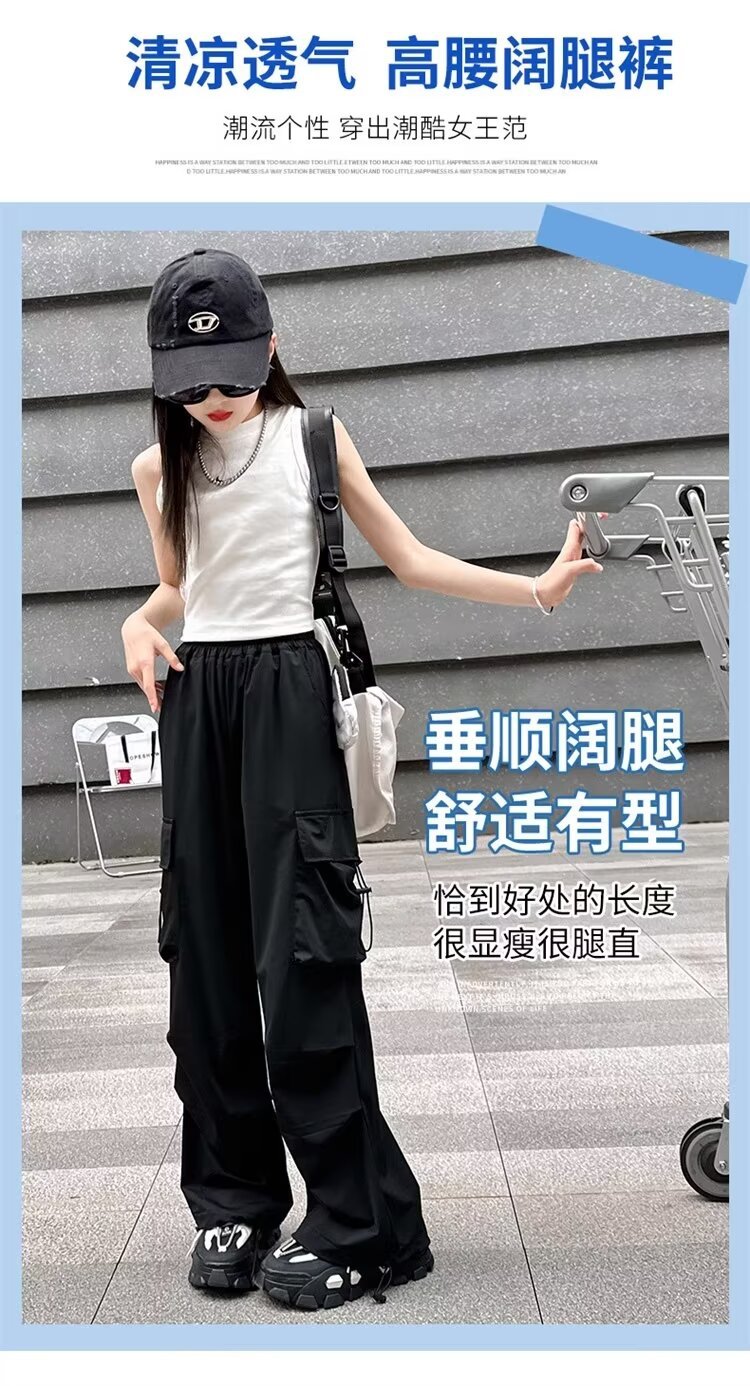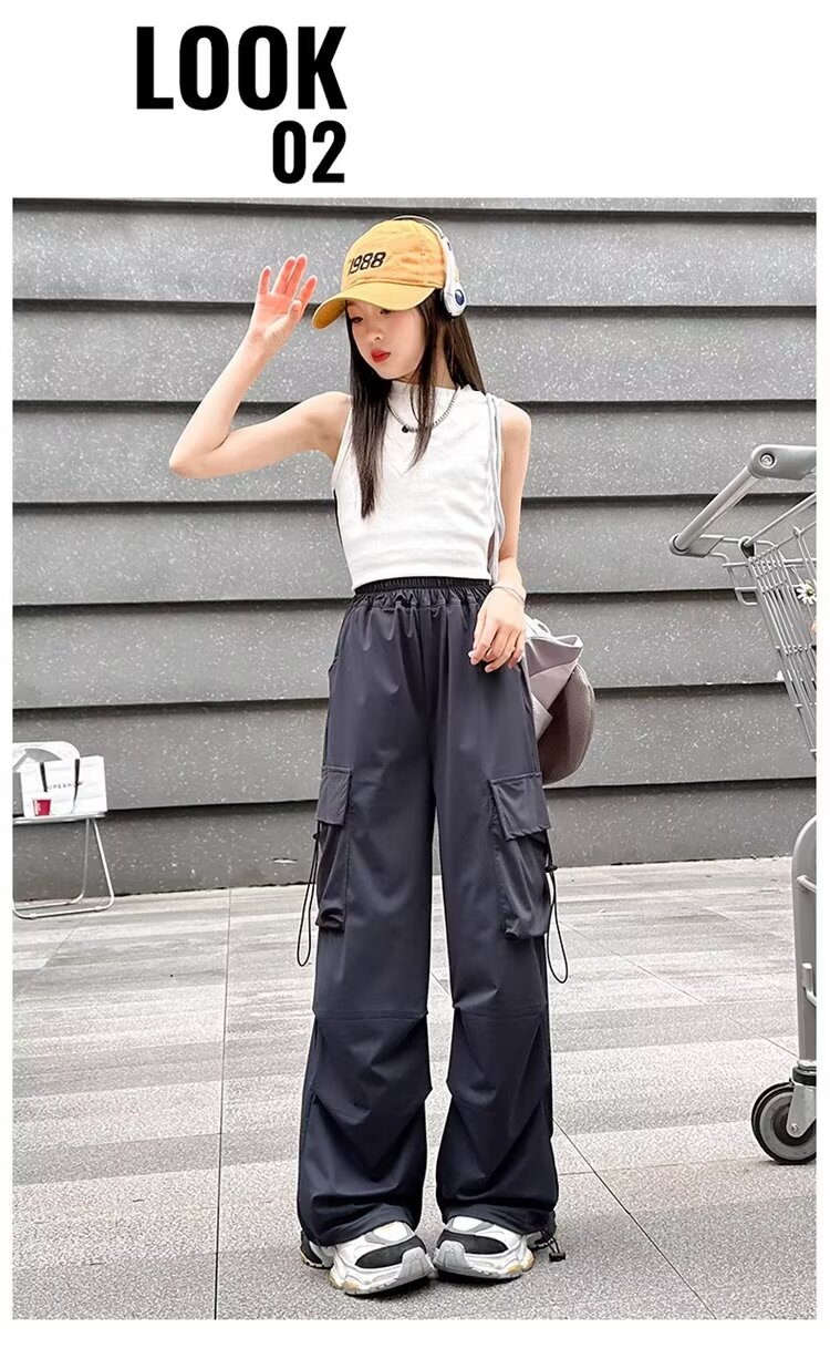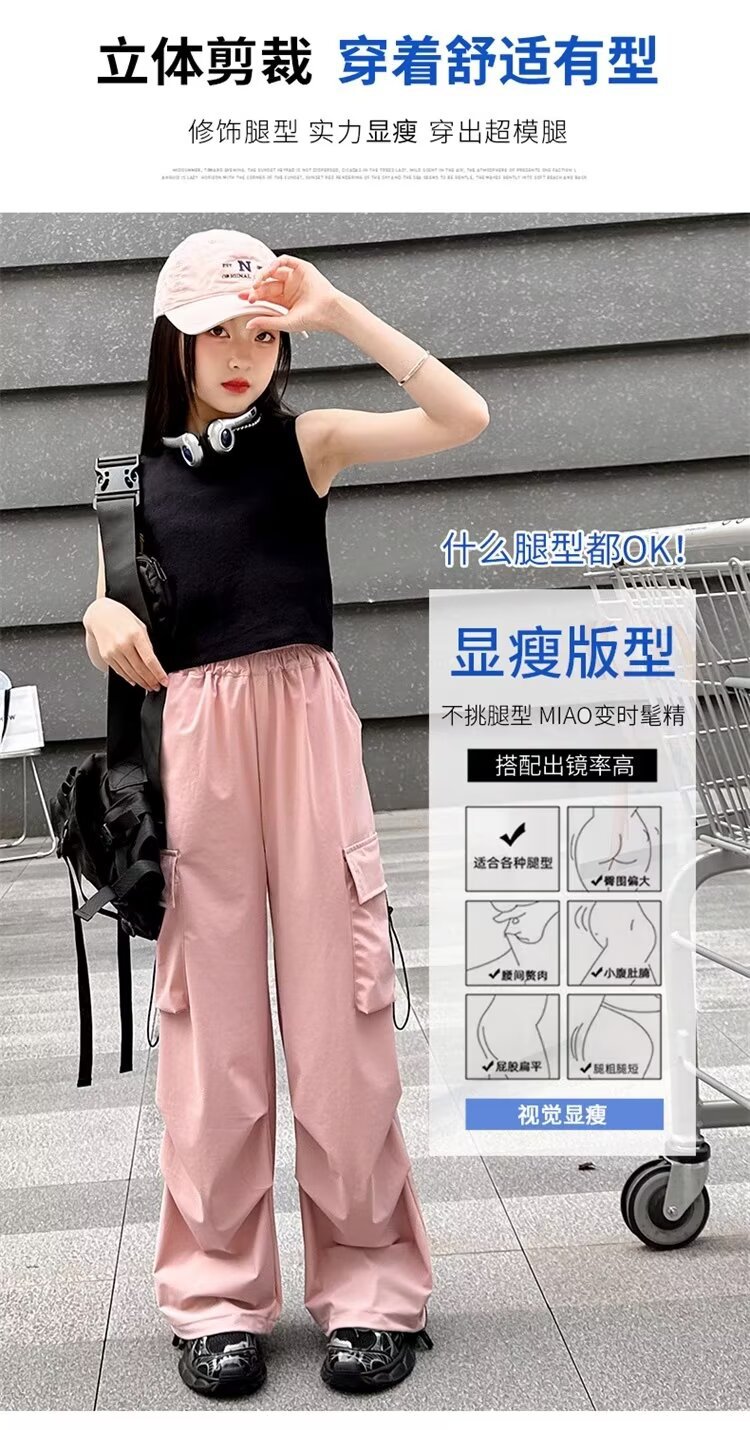 소녀 빠른 건조 아이스 실크 바지 여름 새로운 2024 큰 어린이 여름 투웨어 크록 바지 어린이 넓은 다리 바지스토어 가기