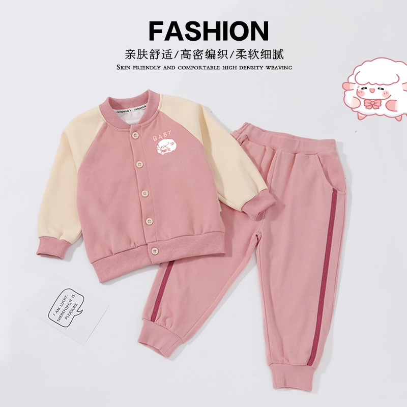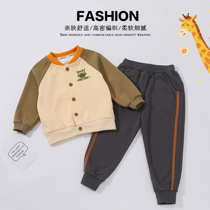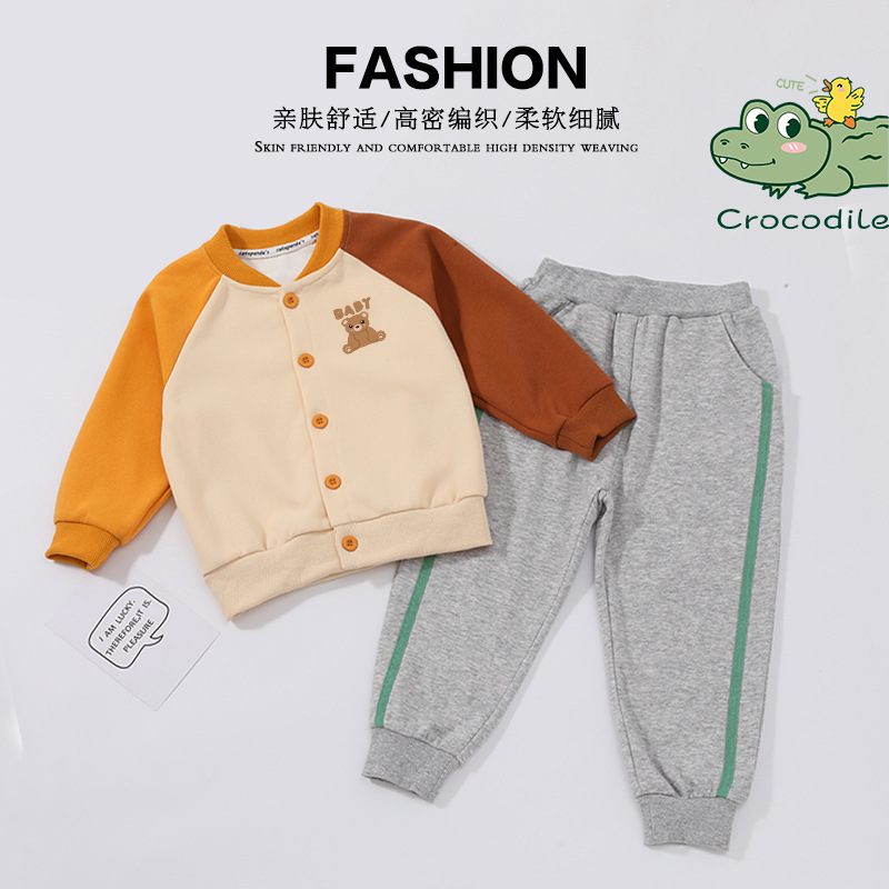 봄과 가을 새 소년 소녀 캐주얼 야구 세트 어린이 최고 아기 옷 대조 컬러 긴 소매 재킷