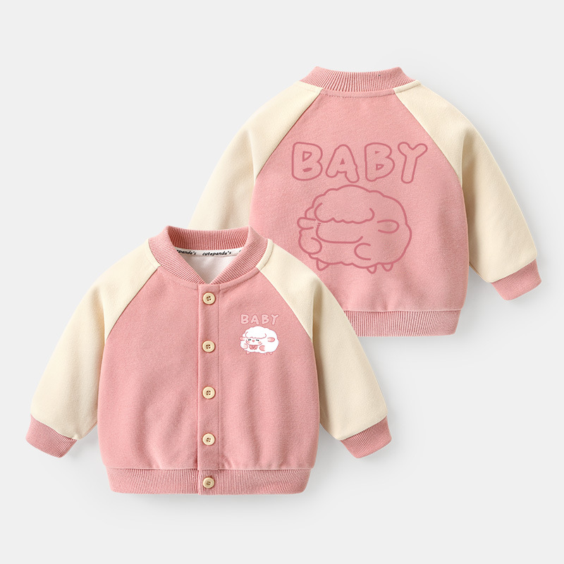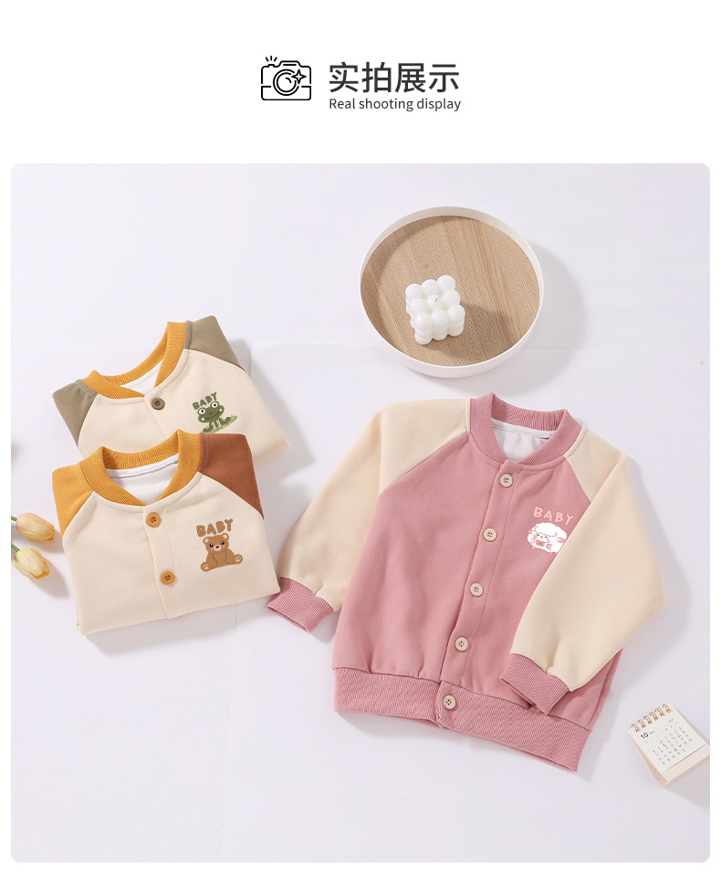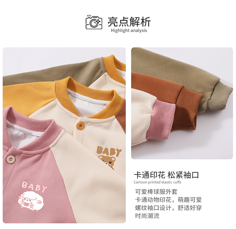 봄과 가을 새 소년 소녀 캐주얼 야구 세트 어린이 최고 아기 옷 대조 컬러 긴 소매 재킷스토어 가기