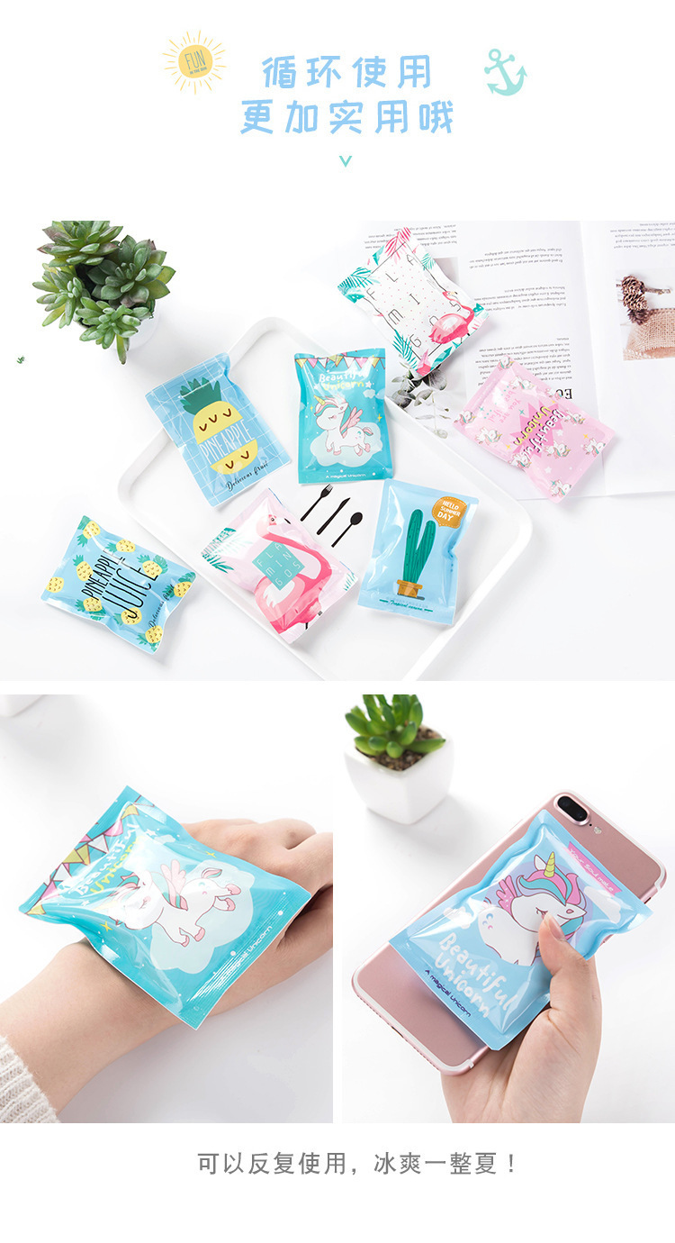 학생들을위한 만화 얼음 팩 여름 냉각 및 열 예방 귀여운 작은 얼음 팩 재사용 가능한 야외 휴대용 냉간 압축 얼음 팩