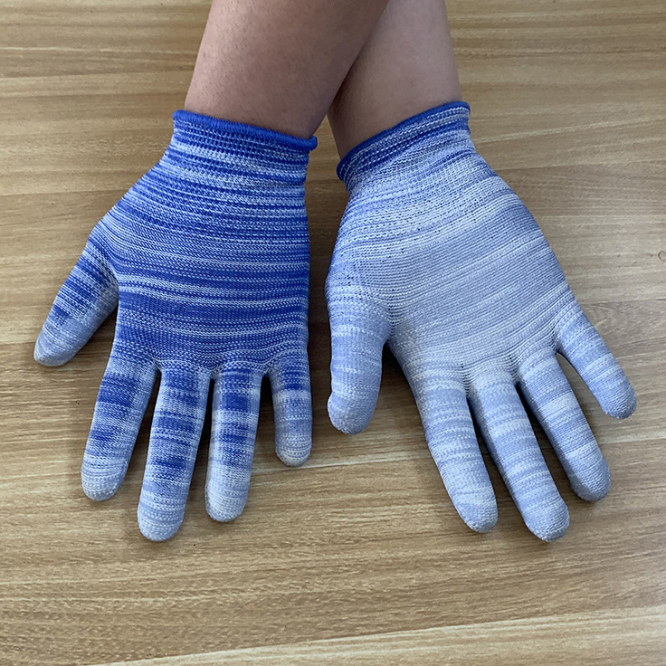 • 블루 PU 스트라이프 코팅 팜 장갑/M 크기