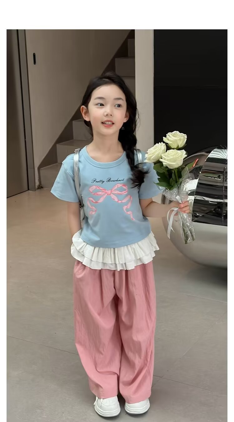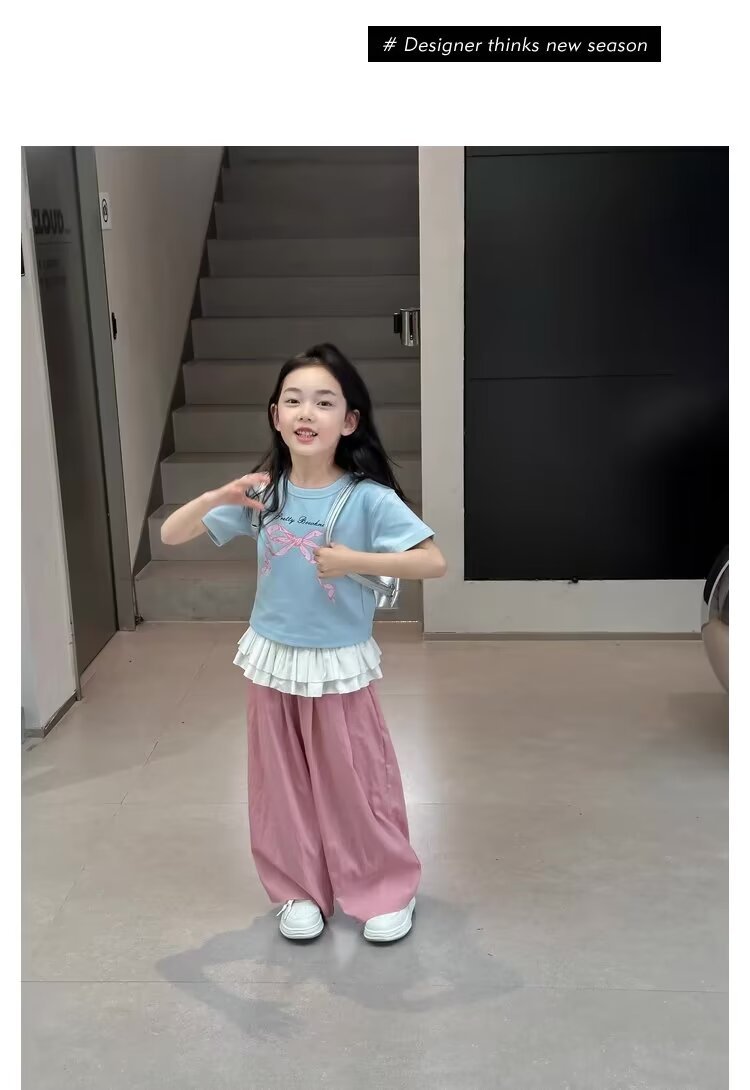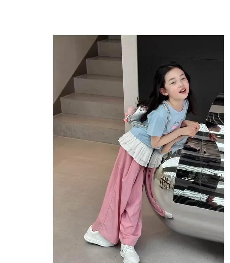 야마모토 바지 소녀 바지 어린이 2024 년 새 여름 중 · 대형 어린이 캐주얼 올매치 느슨한 넓은 다리스토어 가기