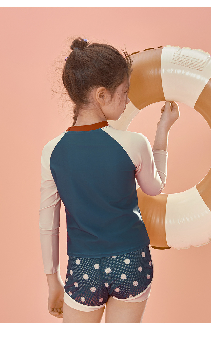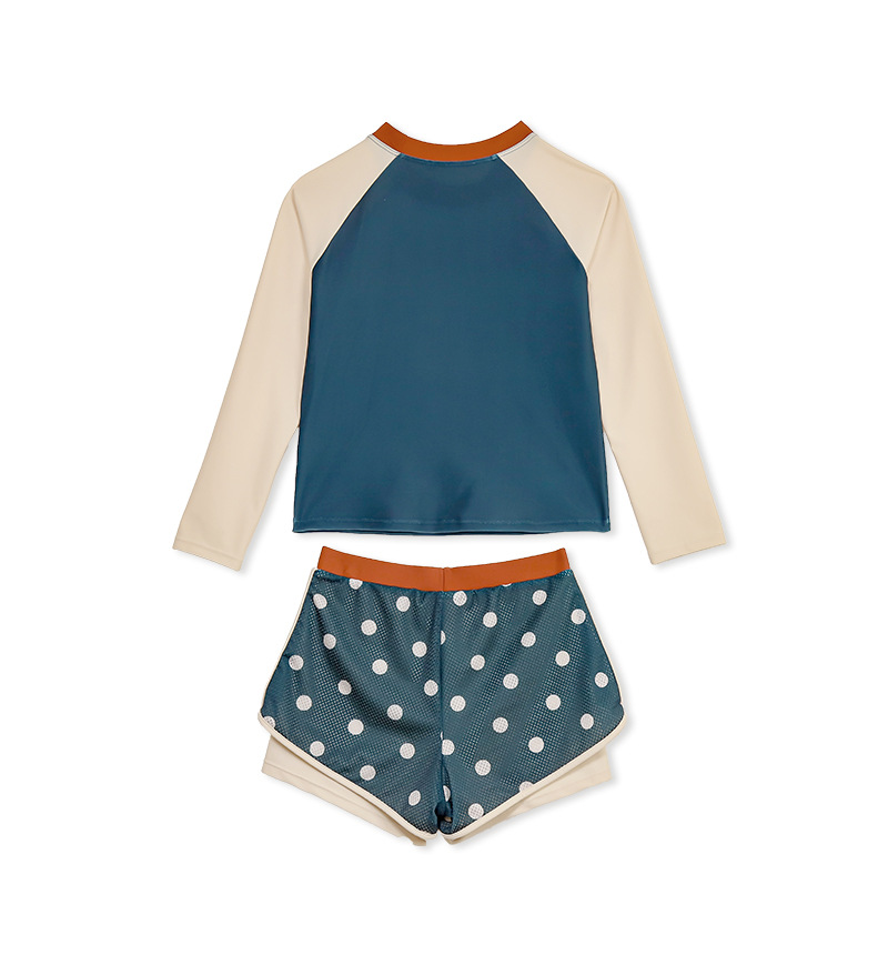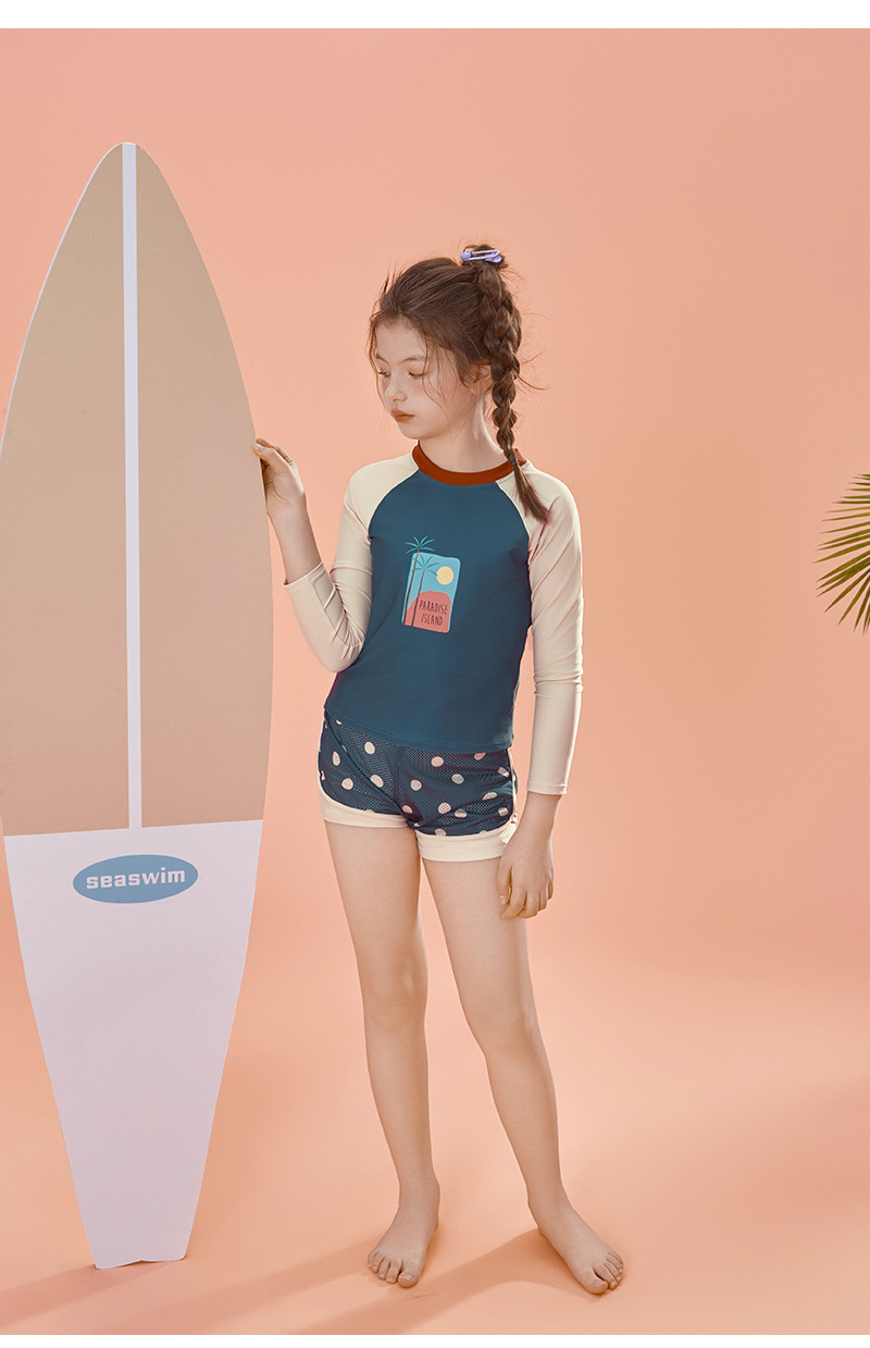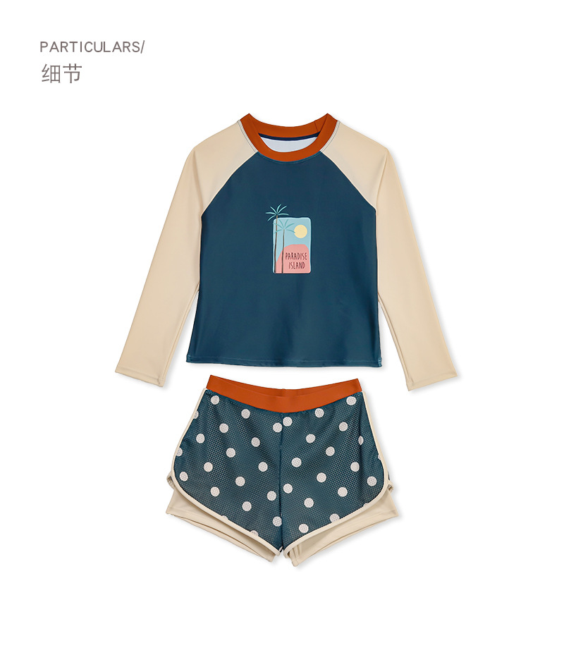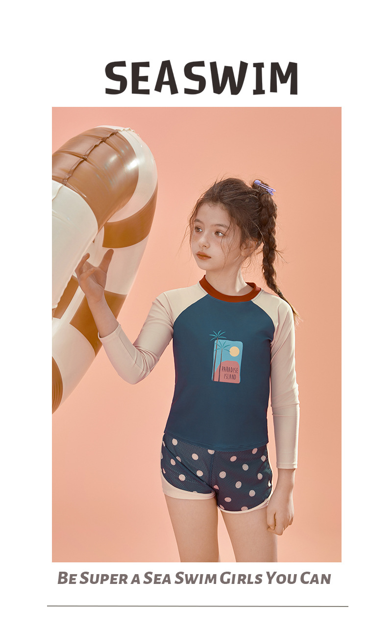 여자 수영복 2024 여름 새로운 레저 스포츠 짧은 소매 반바지 웨이브 도트 분할 대형 어린이 수영복 도매