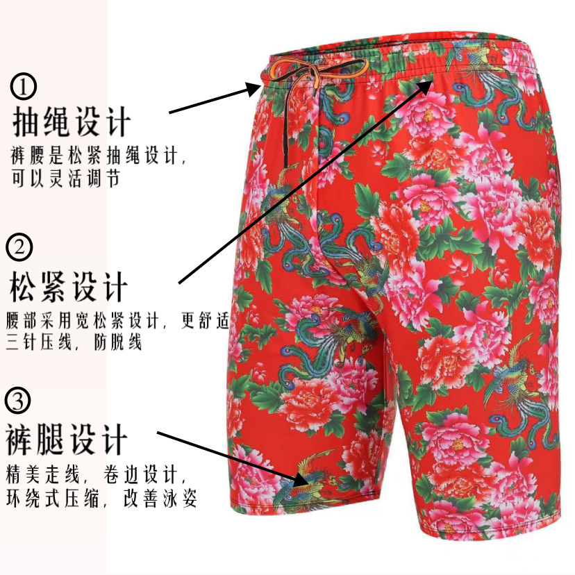 수영 트렁크 남성의 새로운 남성 지방 수영 트렁크와 지방 증가 빠른 건조 통기성 북동쪽 큰 꽃 수영 트렁크 공장 아울렛