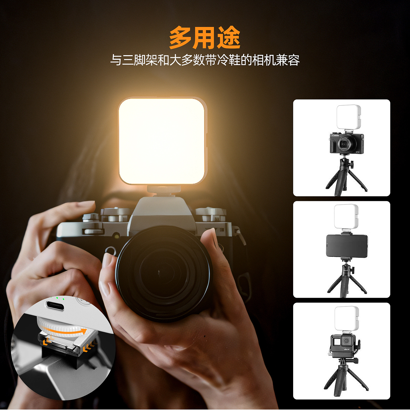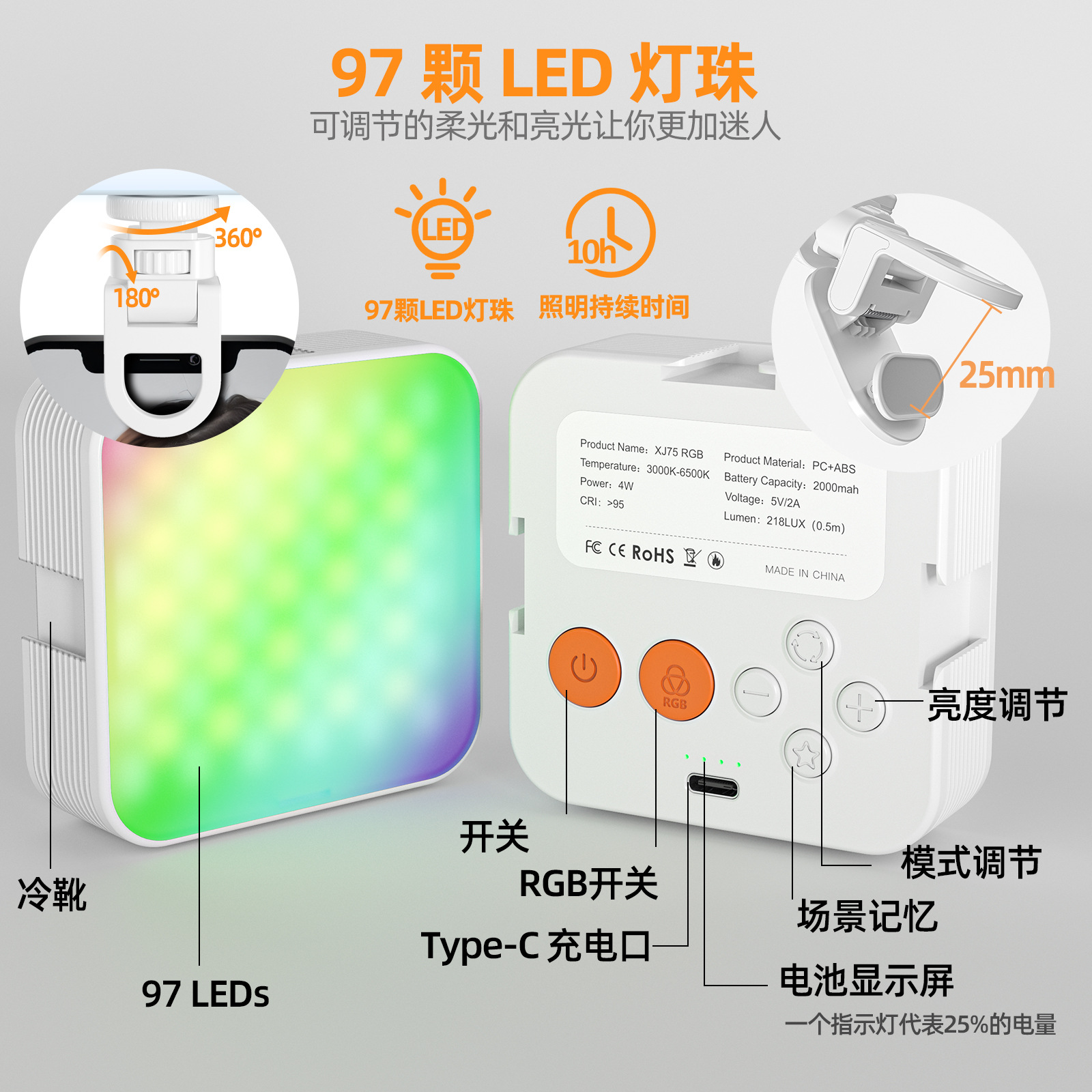 아마존 카메라 포켓 빛 분위기 미니 RGB 휴대 전화 채우기 빛 라이브 VLOG 화상 회의 사진 조명
