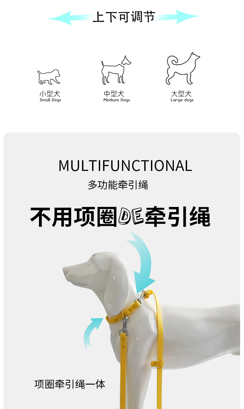 새로운 애완 동물 제품 PVC 모조 실리콘 다기능 견인 로프 무료 손 마카롱 견인 벨트 개 걷는 로프스토어 가기