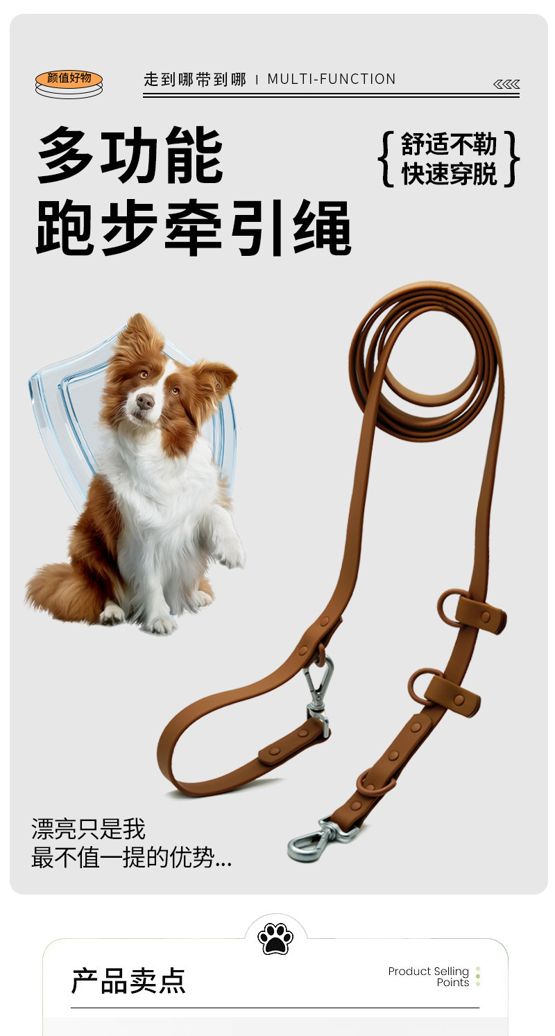 새로운 애완 동물 제품 PVC 모조 실리콘 다기능 견인 로프 무료 손 마카롱 견인 벨트 개 걷는 로프
