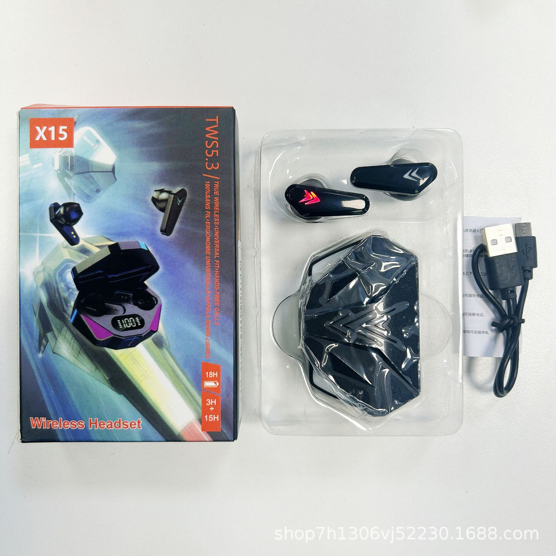 국경 간 X15 e 스포츠 게임 블루투스 헤드셋 실제 무선 5.2 긴 내구성 낮은 대기 시간 HD 디지털 디스플레이 공장 직접 판매