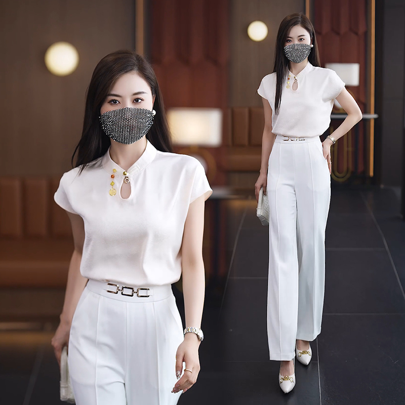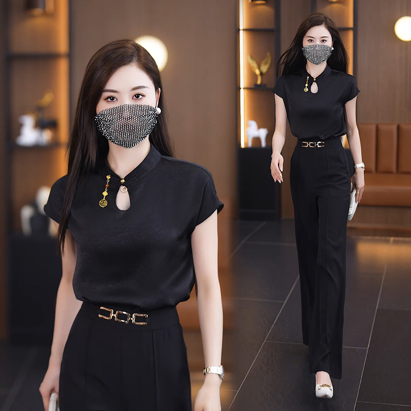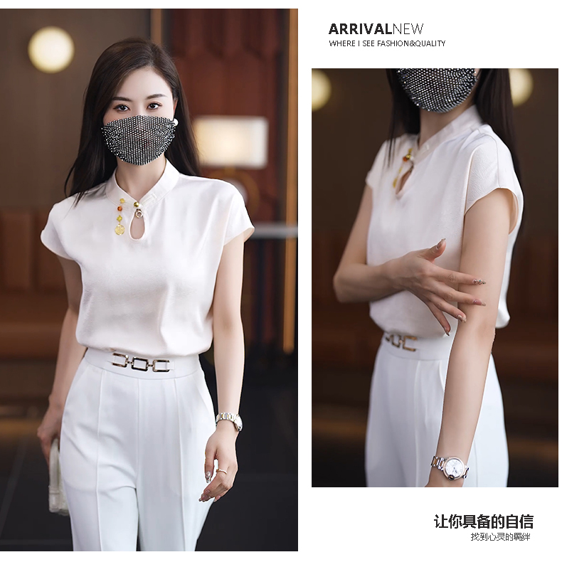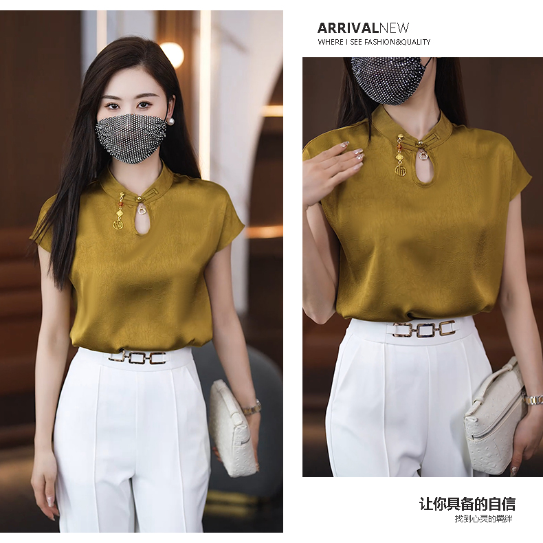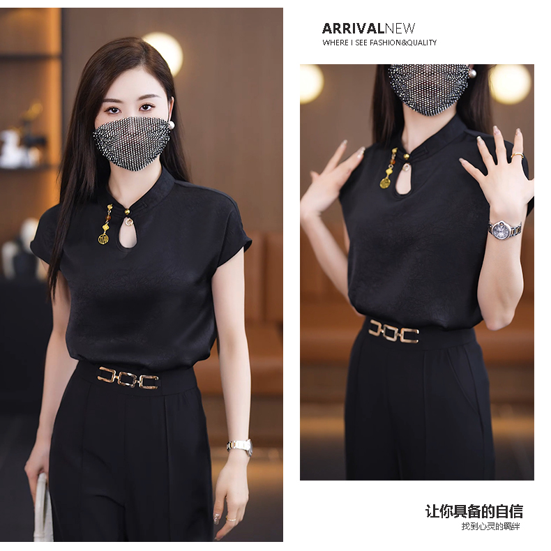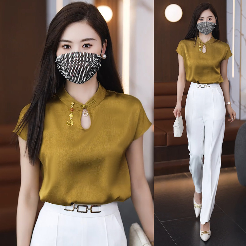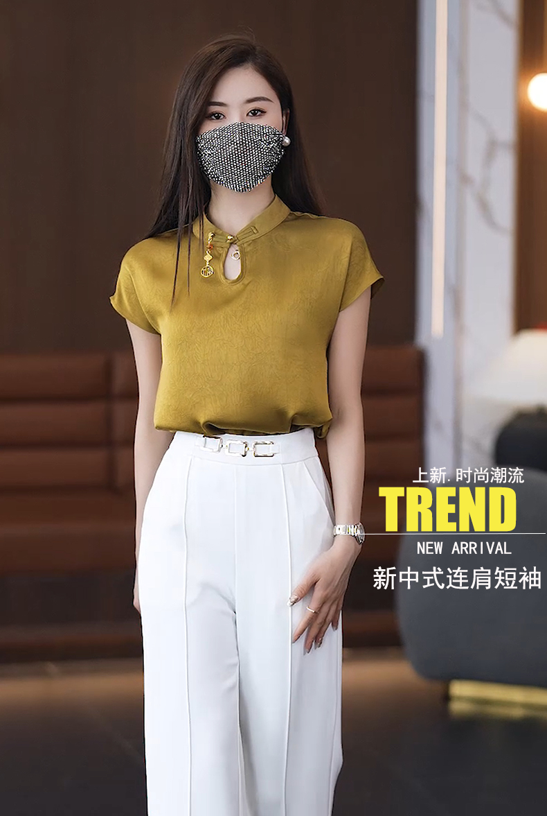 2024 여름 새로운 반팔 쉬폰 셔츠 여성 패션 서양 스타일 아름다운 나이 감소 새로운 중국 스타일 탑 여성 작은 셔츠스토어 가기