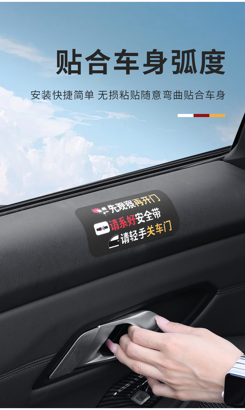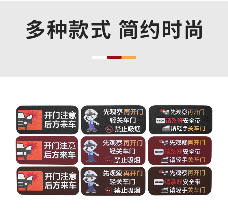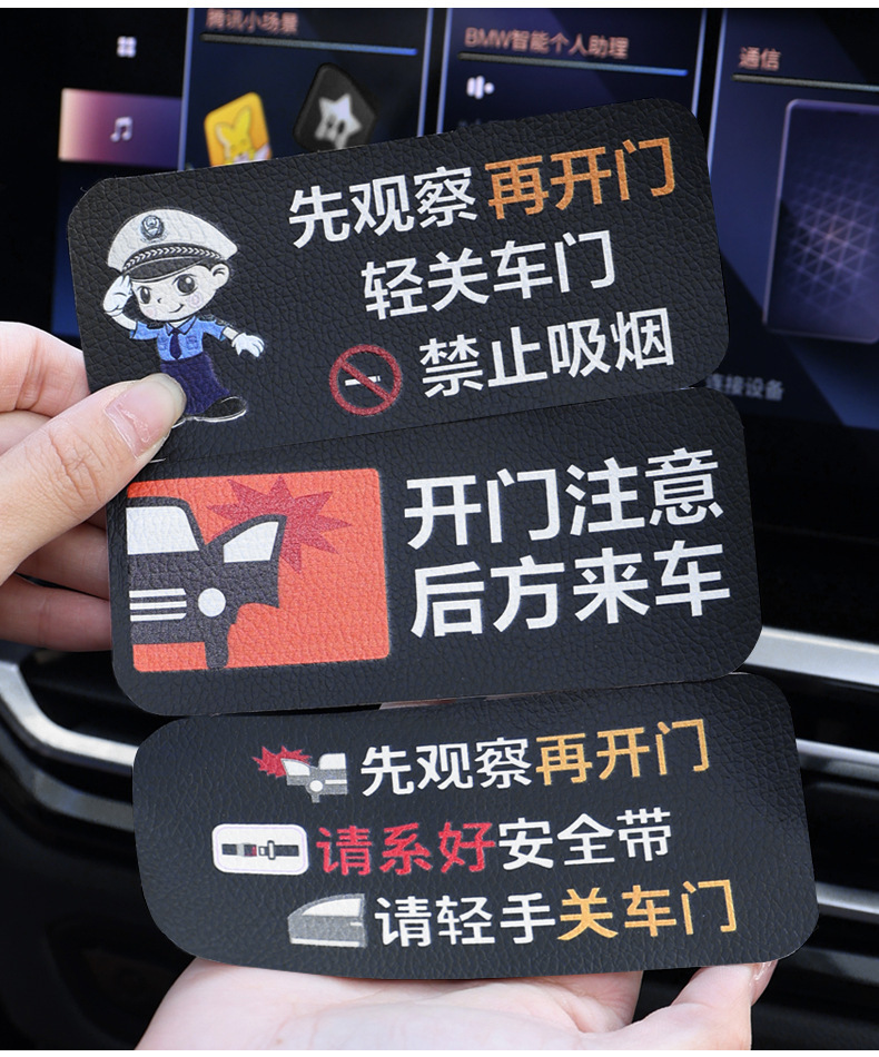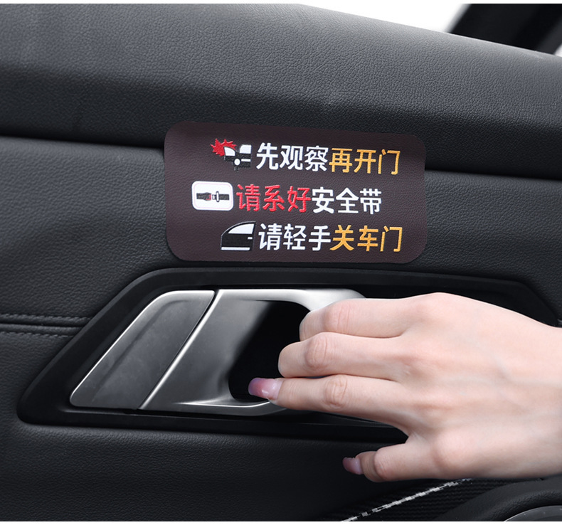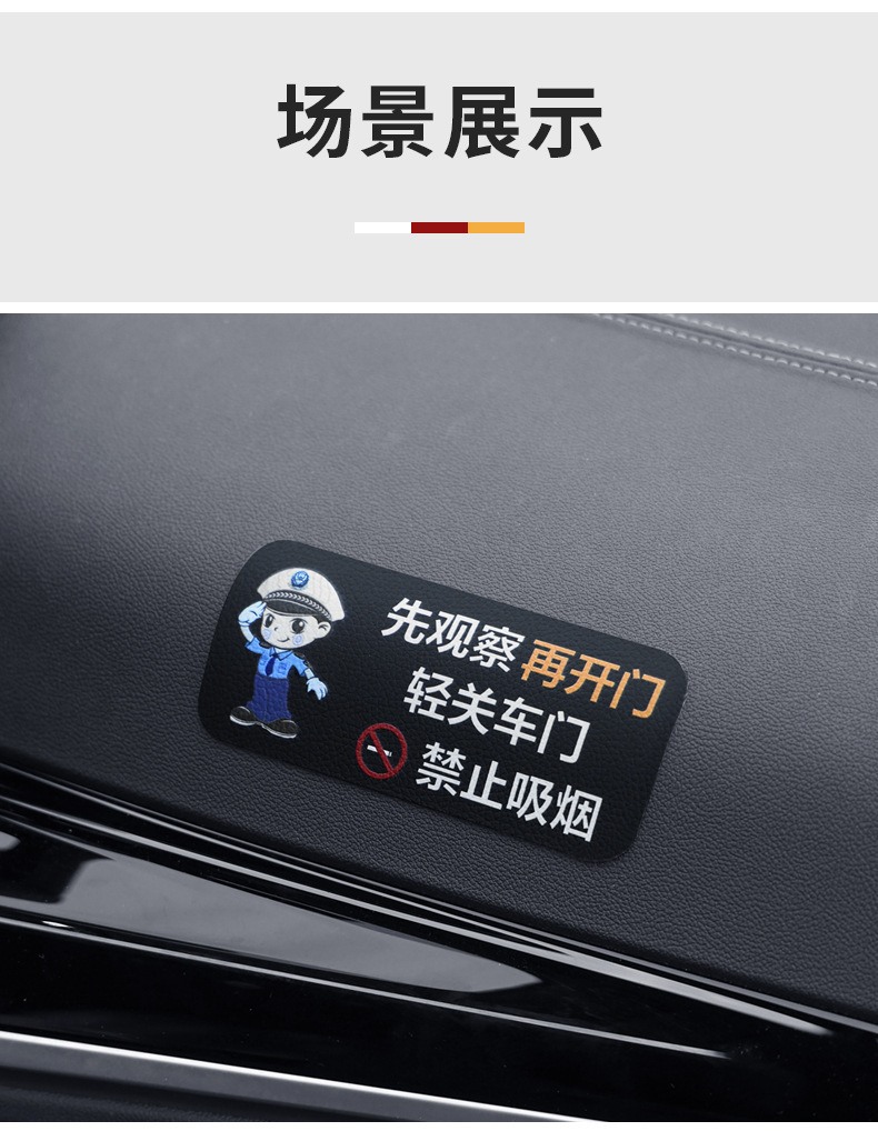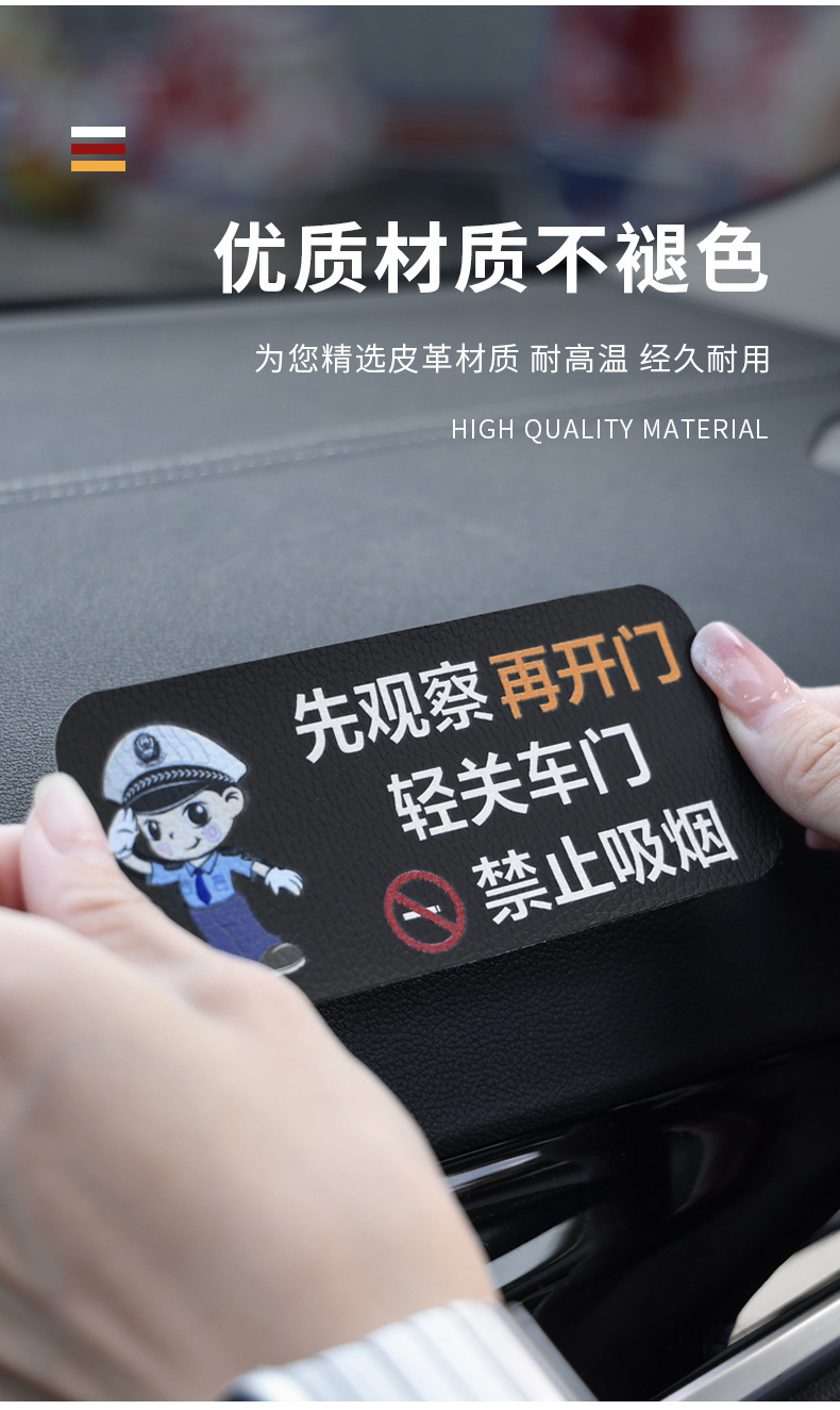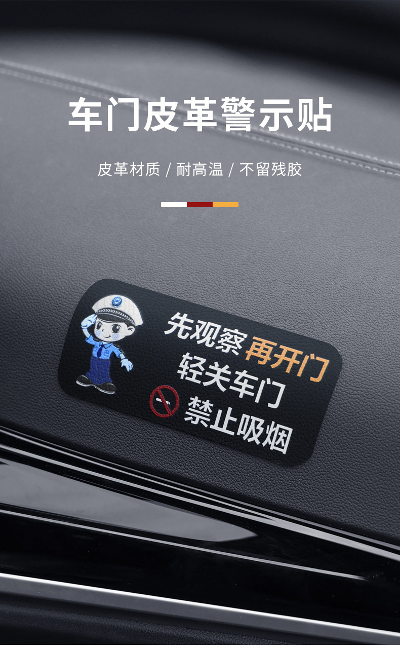 가죽 경고 스티커, 가볍게 문을 닫고, 담배를 피우지 말고, 차를 가볍게 문을 닫도록 상기시켜주십시오.스토어 가기