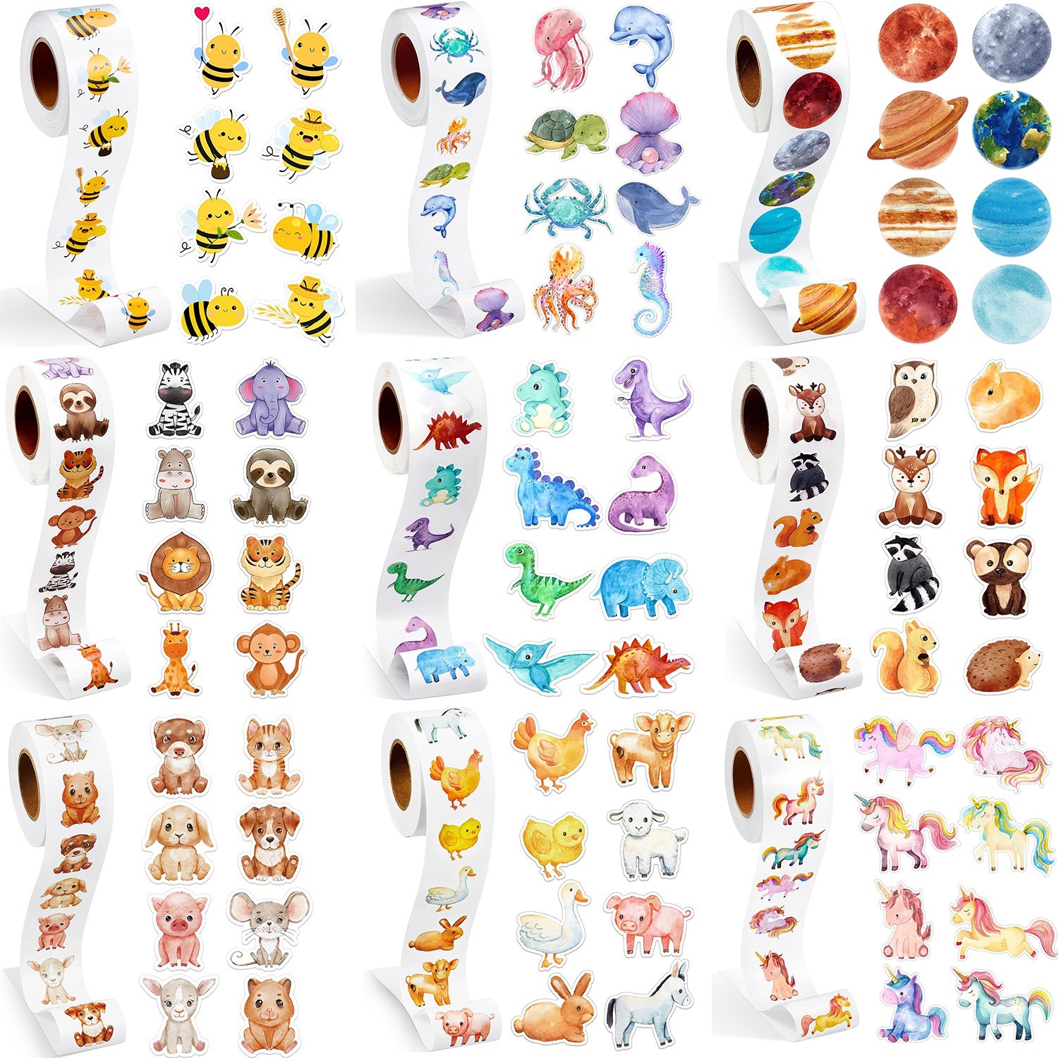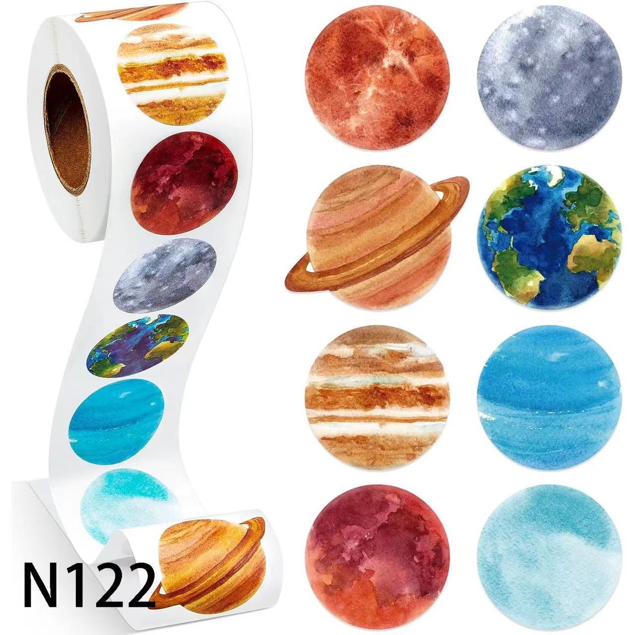 재고 도매 귀여운 만화 공룡 돌고래 행성 스티커 어린이 교육 식별 그림 라벨 라운드 작은 스티커
