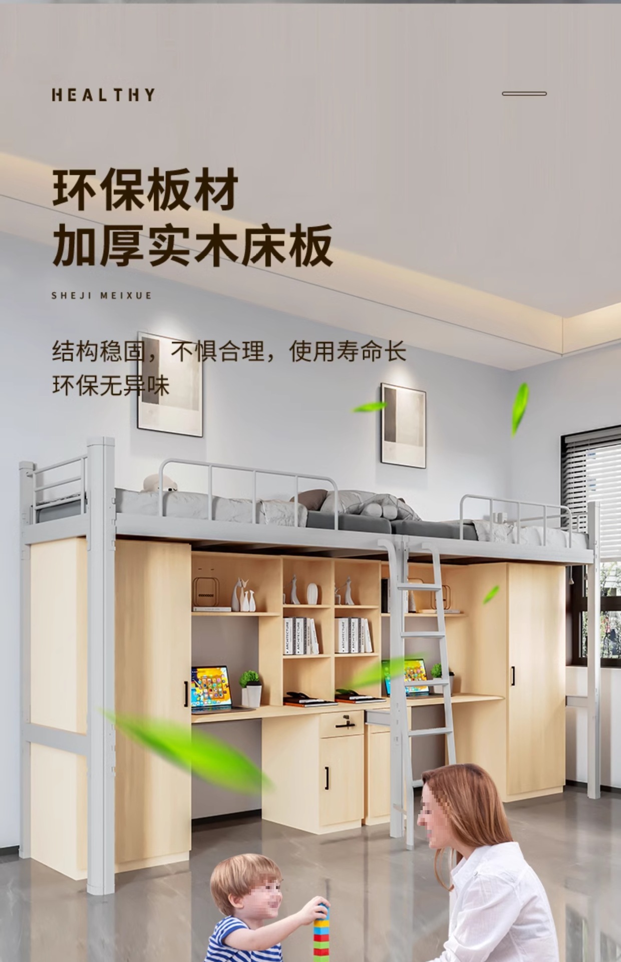W * 침대와 낮은 테이블 성인 아파트 작은 아파트 철 더블 침대와 낮은 테이블 조합 침대 대학 기숙사스토어 가기