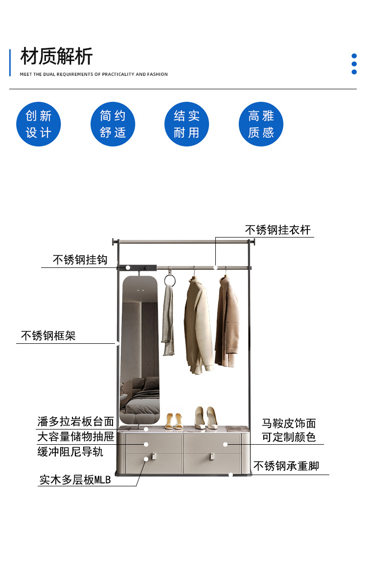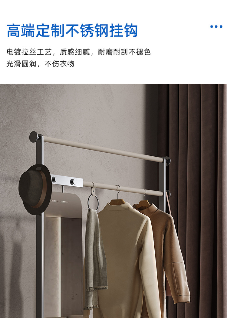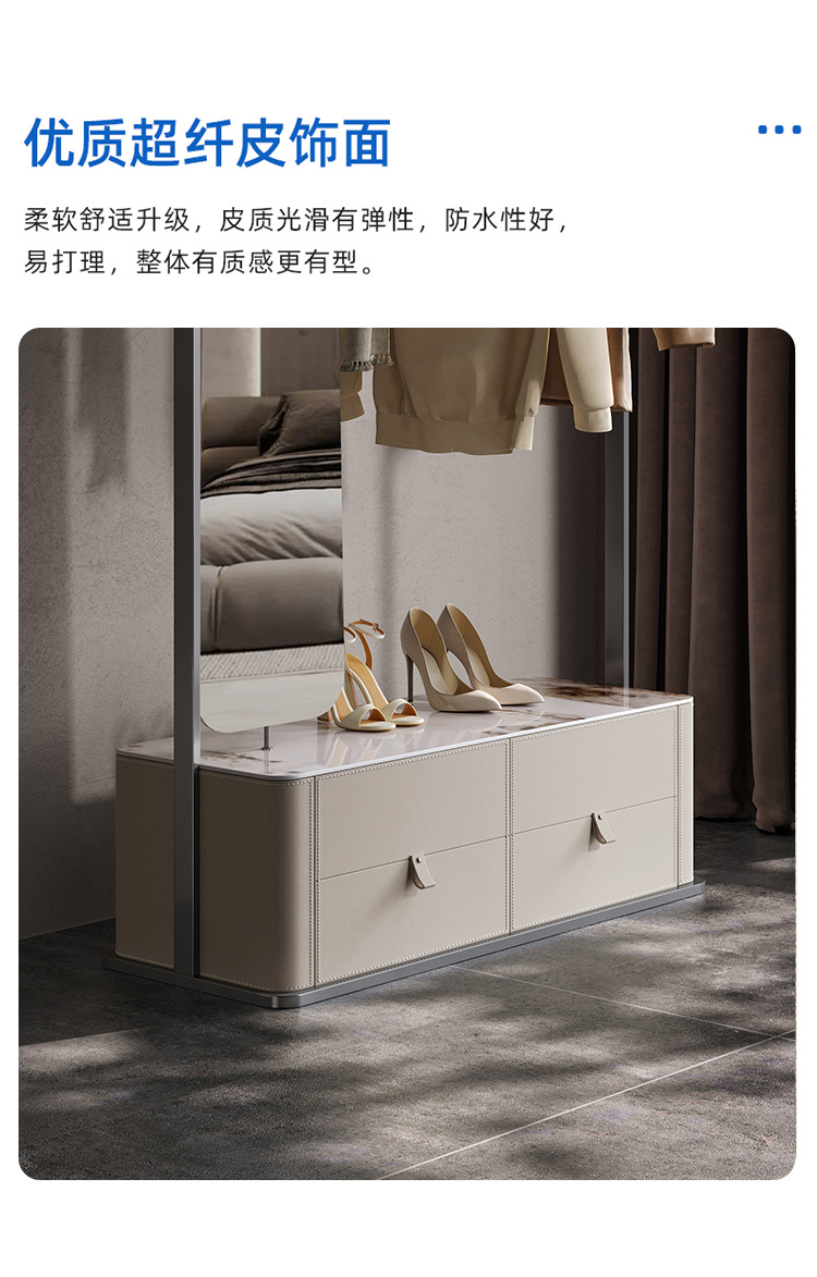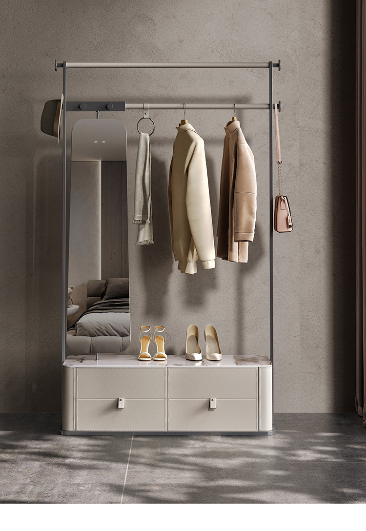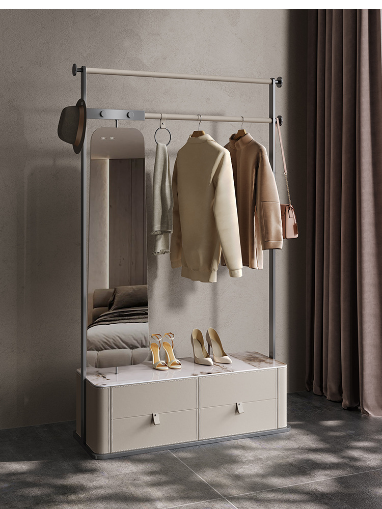 가벼운 럭셔리 코트 랙 침실 바닥 걸이 전체 길이 거울 회전 가죽 아트 스테인레스 스틸 스토리지 수석 디자이너