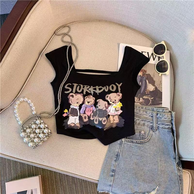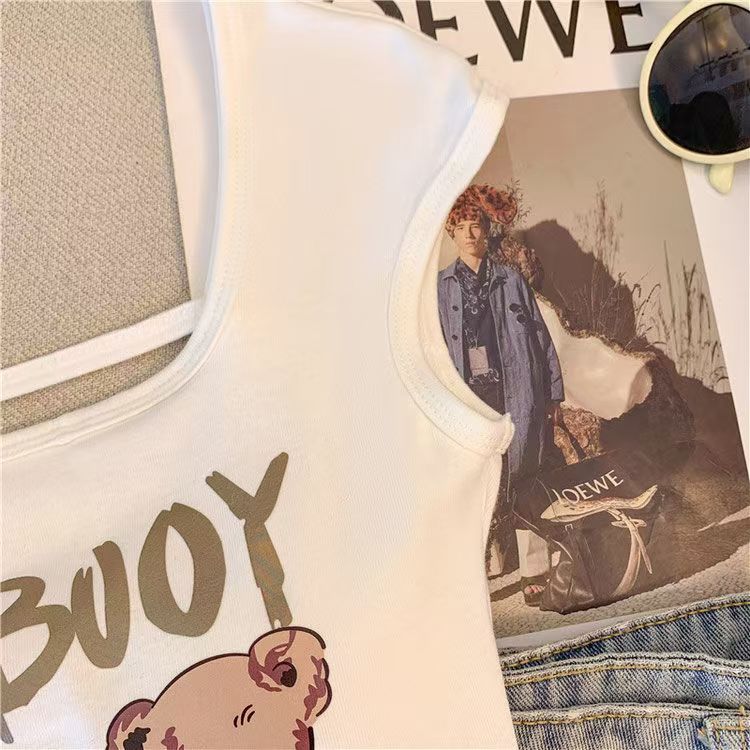 2024 새로운 소녀 슬링 중대형 어린이 조끼 면화 인쇄 탑 여름 짧은 만화 외부 착용