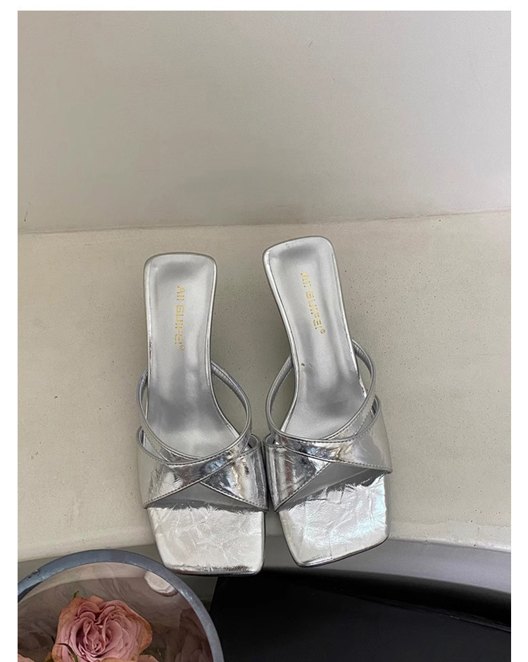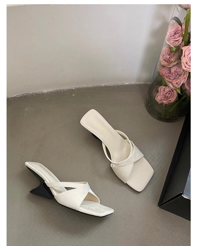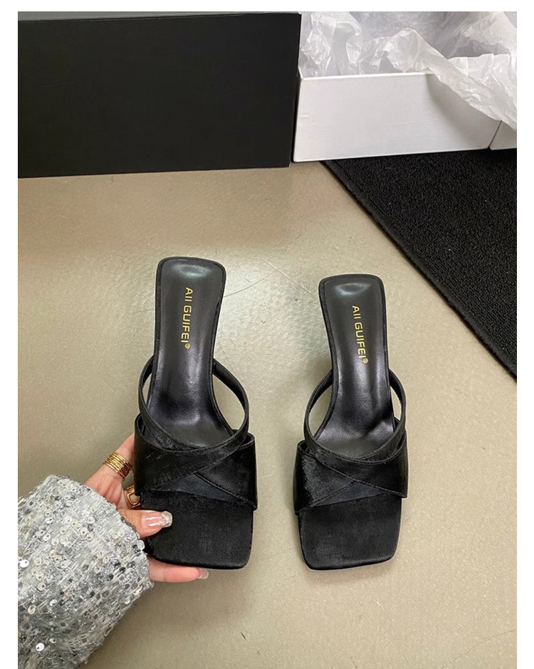 프랑스 스타일 우아한 틈새 오픈 토 스퀘어 발가락 샌들과 슬리퍼 여성용 여름 하이힐과 하이힐이 두꺼운 힐을 착용