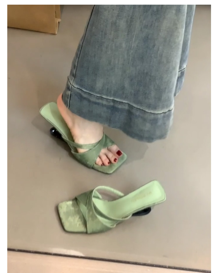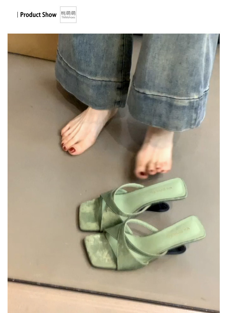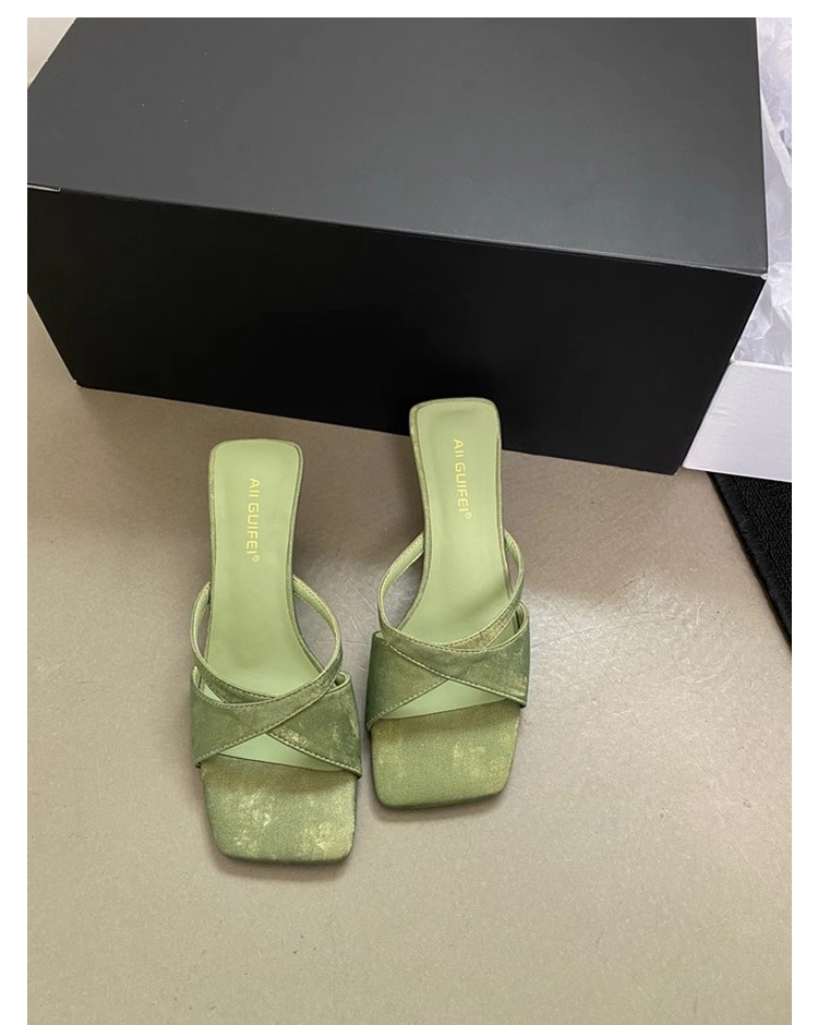 프랑스 스타일 우아한 틈새 오픈 토 스퀘어 발가락 샌들과 슬리퍼 여성용 여름 하이힐과 하이힐이 두꺼운 힐을 착용스토어 가기