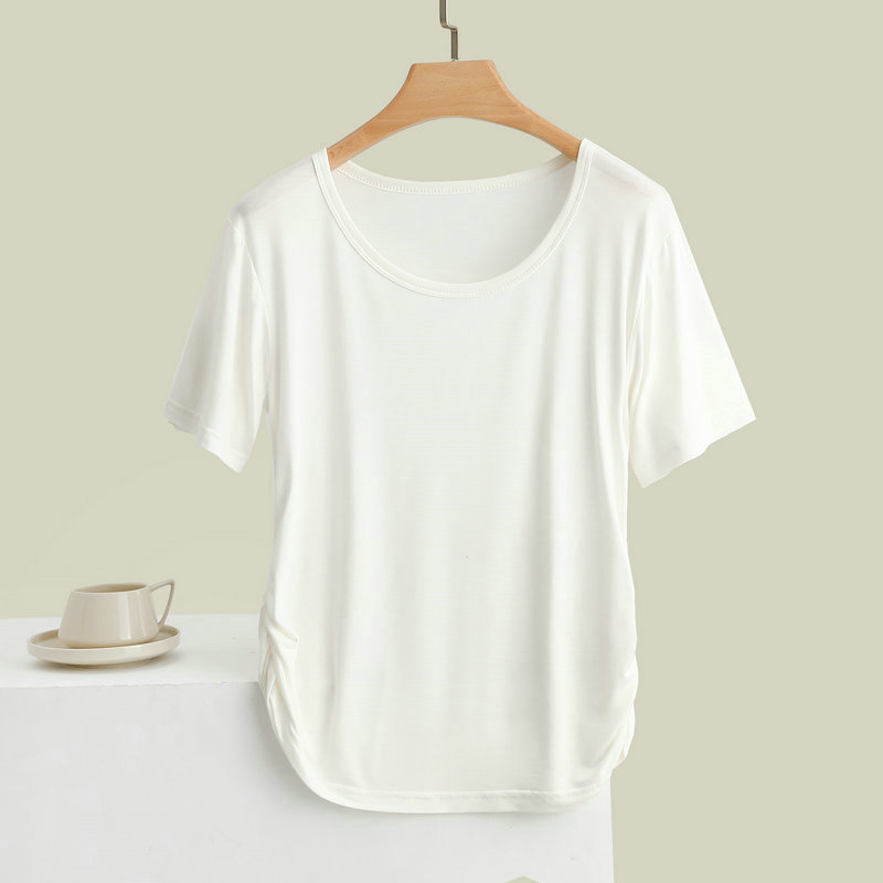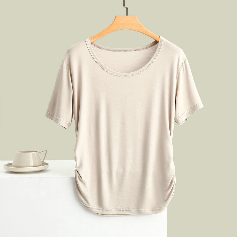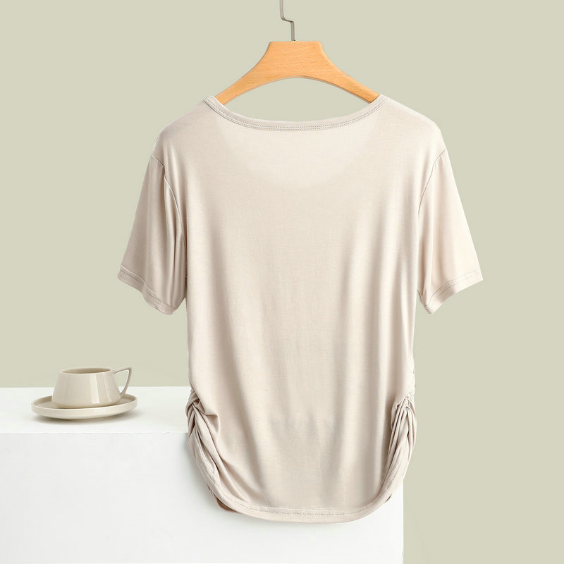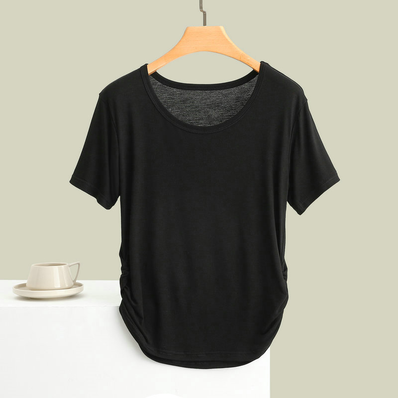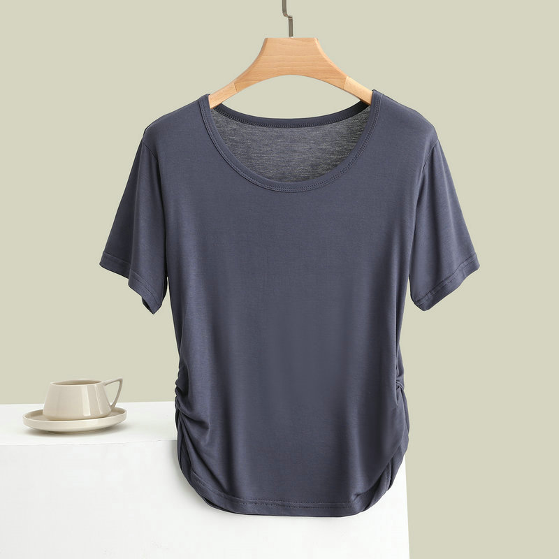 모달 디자인 센스 타이트 허리 슬림 핏 반팔 티셔츠 여성용 편안한 올 매치 캐주얼 탑 넥 요가 댄스 의류