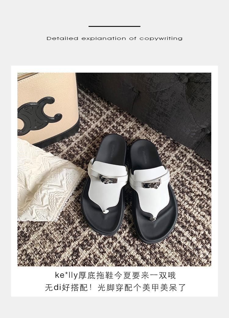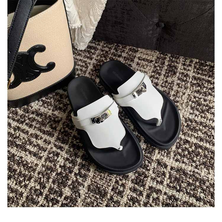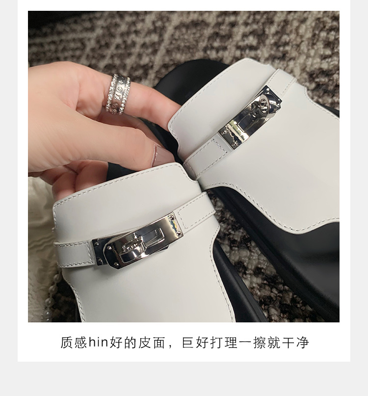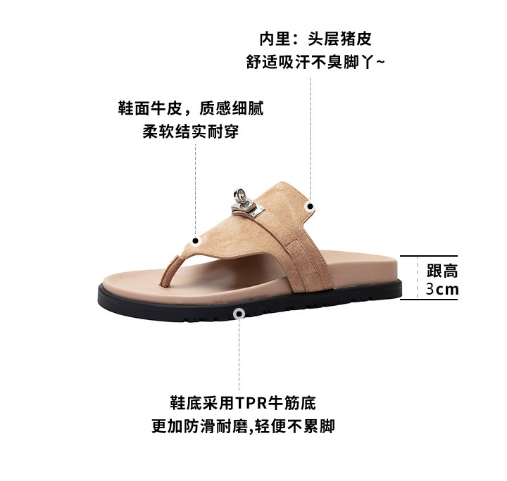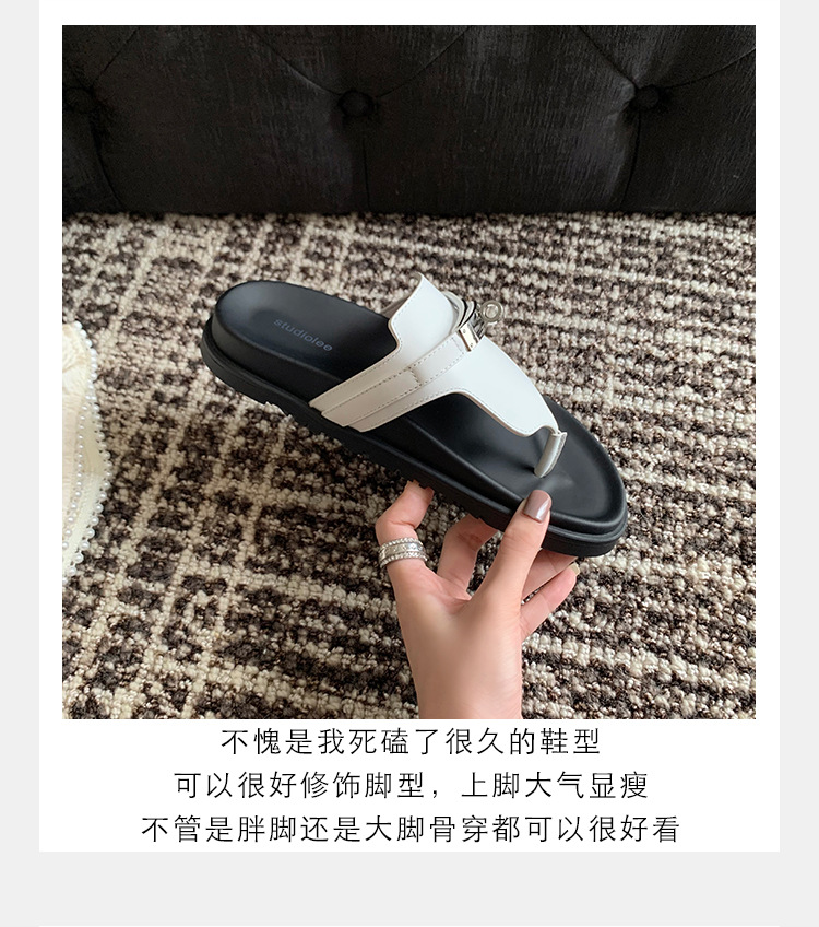 2024 년 여름 새로운 통 실버 버클 헤링스타일 로마 플랫 여성 레트로 Cowhide 플랫 캐주얼 샌들