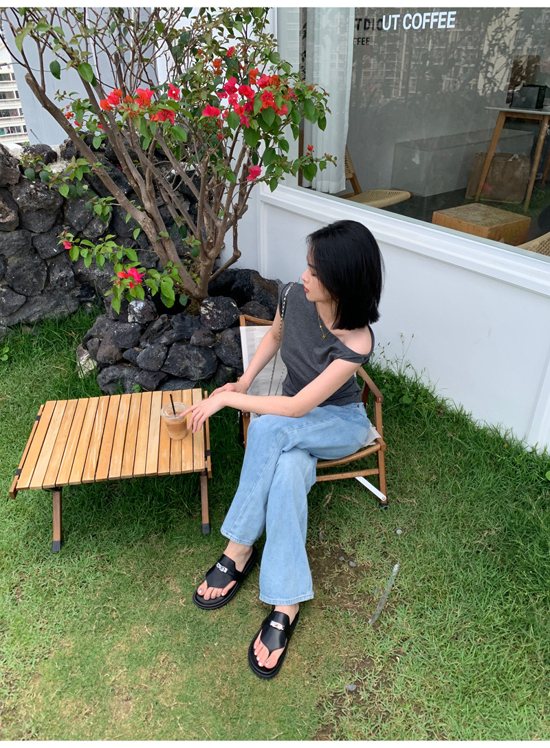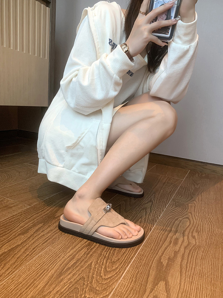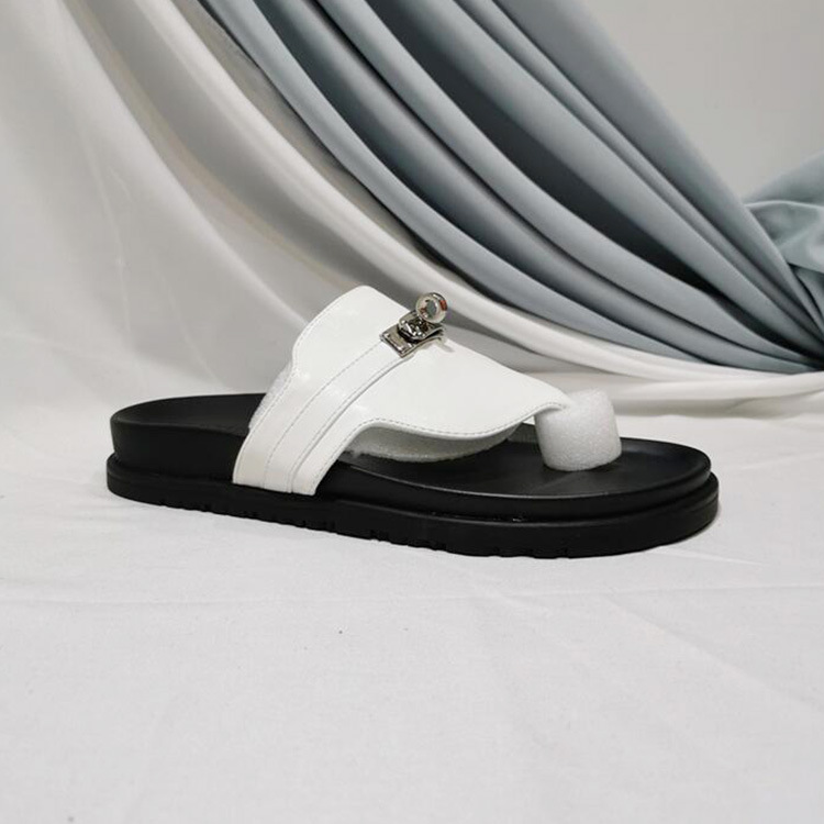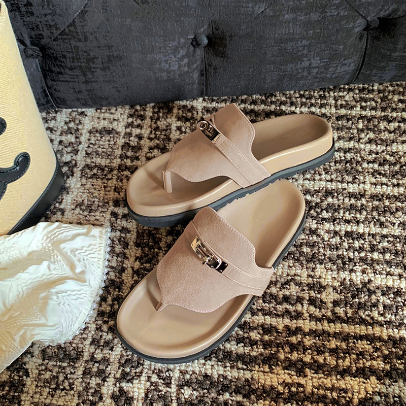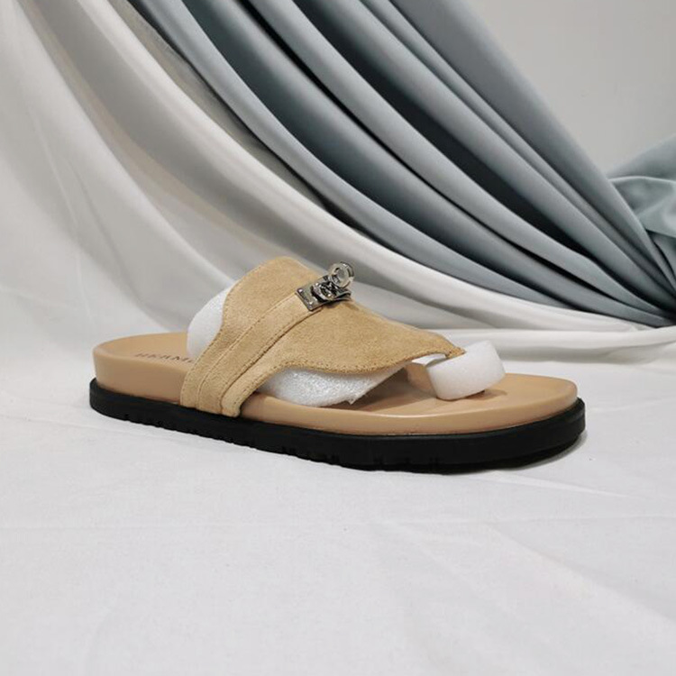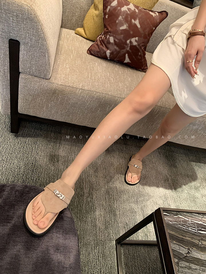 2024 년 여름 새로운 통 실버 버클 헤링스타일 로마 플랫 여성 레트로 Cowhide 플랫 캐주얼 샌들스토어 가기